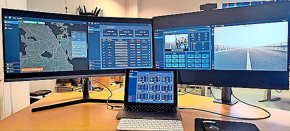– L’année prochaine, essais avec conducteur de sécurité et téléopération partielle (photo: le poste de commande situé dans le dépôt de bus).