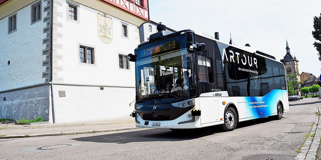 Le nom Artour a été choisi pour ce bus électrique dans le cadre d’un concours public organisé à Arbon. Il s’agit d’un véhicule e-ATAK de la marque turque Karsan, d’une longueur d’environ 8,3 mètres, qui dispose de 20 places assises et peut accueillir jusqu’à 50 passagers. Pour l’instant, les passagers ne peuvent toutefois voyager qu’assis et attachés. Artour est donc d’un tout autre calibre que les petits véhicules des projets précédents de bus autonomes mis en service à Sion, Berne ou Neuhausen am Rheinfall. «Notre objectif est de créer quelque chose qui apporte également une valeur ajoutée à la population», a expliqué Hansueli Bruderer, le responsable du projet, lors de l’inauguration qui s’est déroulée à la mi-août. L’Office fédéral des transports (OFT) partage cet avis. «Les projets menés jusqu’à présent ont eu une utilité plutôt discutable pour les transports publics, car les bus étaient trop petits, trop lents et non adaptés aux personnes handicapées», souligne Barbara Zollinger, collaboratrice scientifique à l’OFT. Artour, en revanche, est considéré comme une étape importante pour l’avenir de la mobilité. En effet, ce projet devrait permettre d’optimiser les coûts des transports publics, ce qui libérera des fonds pour d’autres projets qui, jusqu’à présent, ne pouvaient être soutenus faute de moyens financiers de la part de la Confédération et des cantons. Si la technologie des moteurs électriques peut aujourd’hui être qualifiée d’éprouvée et de fiable, le point crucial réside dans la technologie qui devra un jour remplacer le conducteur. Pour les capteurs et l’électronique de commande, la technologie et le savoir-faire de la société américaine Adastec sont mis à contribution. Le constructeur Karsan s’était déjà engagé très tôt en faveur de la technologie Adastec.