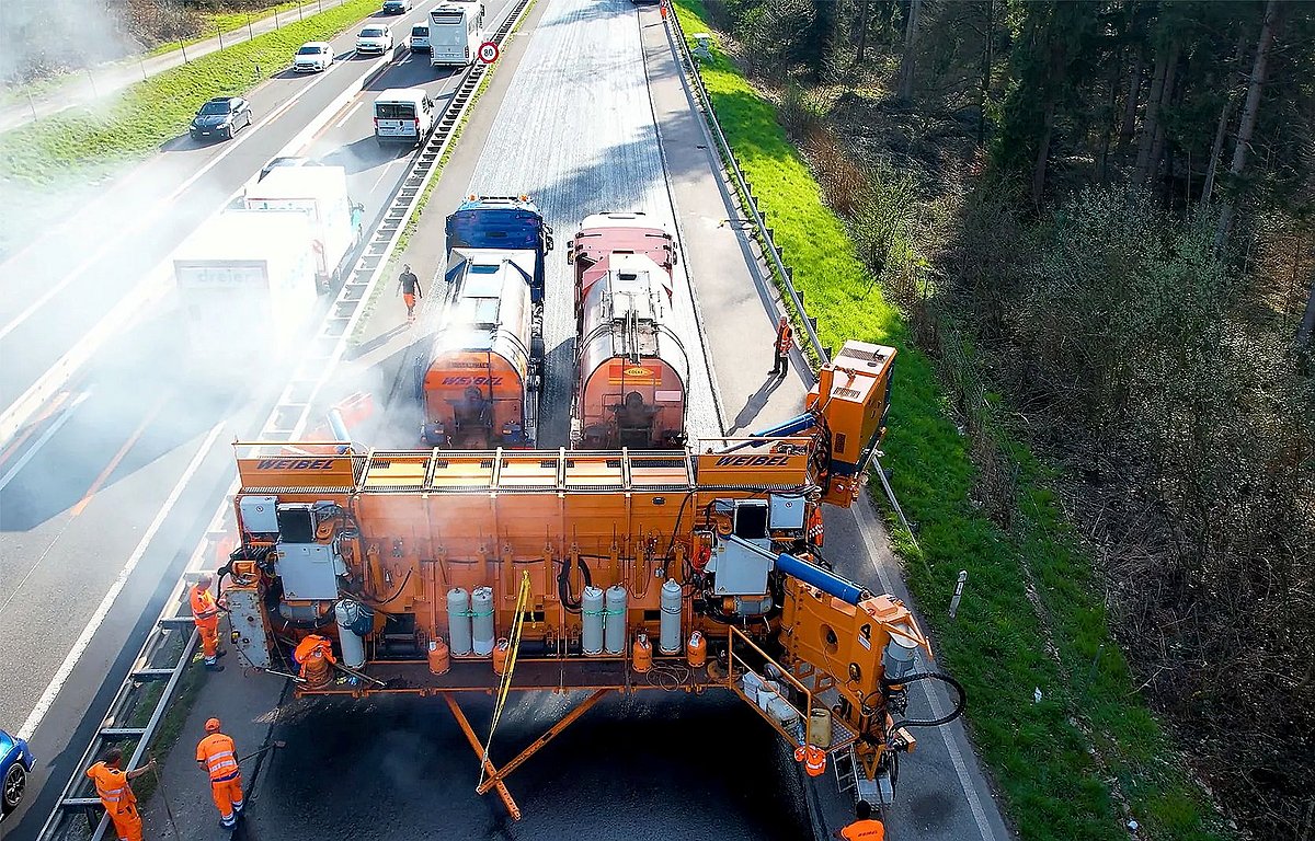 L’inconvénient actuel est toutefois que les couches de base et de roulement doivent être renouvelées ensemble. Le projet de recherche en cours «Asphalte coulé pour les tronçons ouverts (GoS)» vise à permettre également le remplacement de la seule couche de roulement et à définir le procédé de pose optimal.