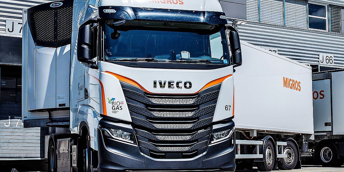 20 nouveaux camions à gaz de type IVECO S-Way Natural Gas sont dès à présent en service pour Migros Ostschweiz. Ils remplacent 20 camions diesel.