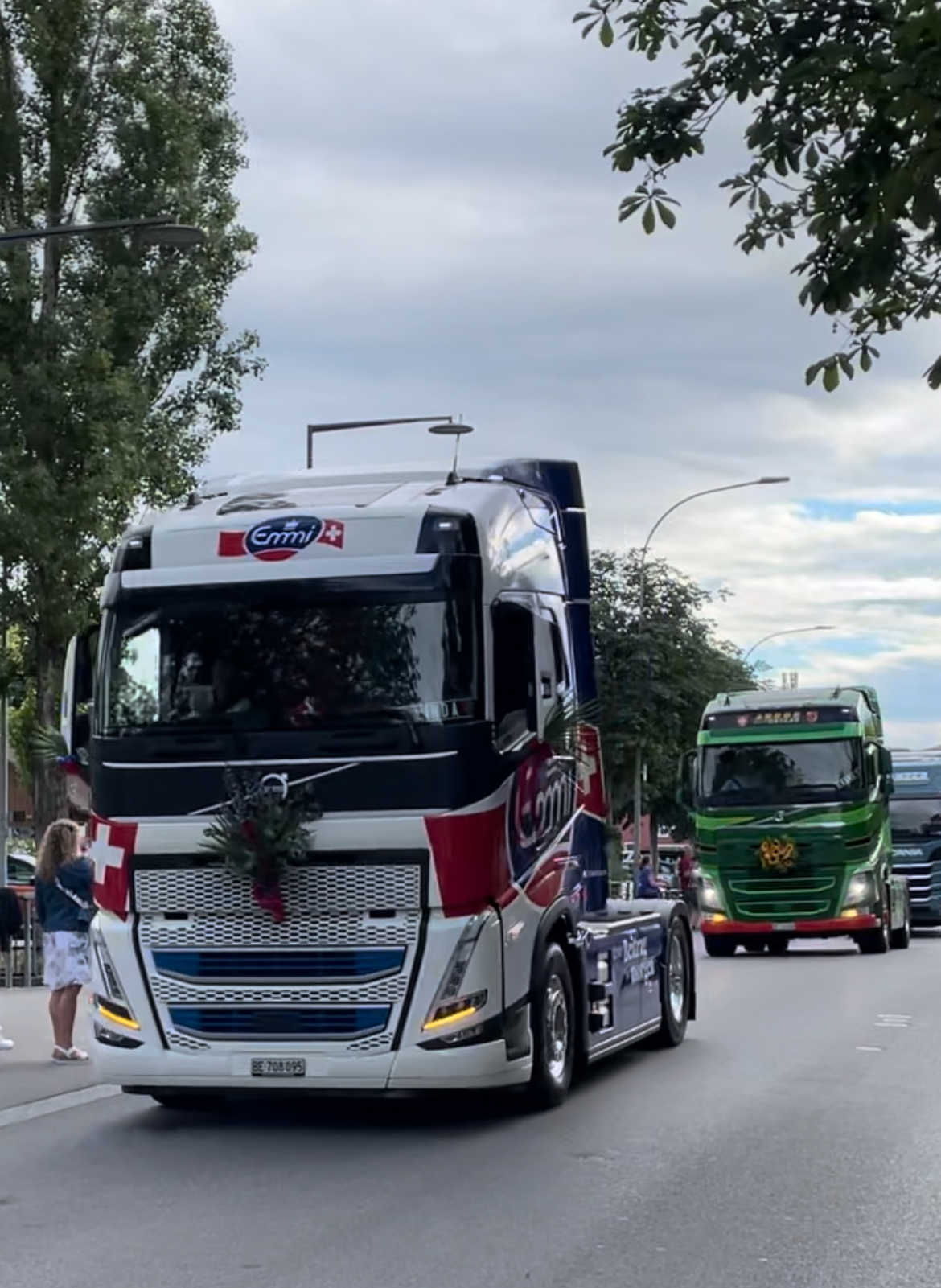 Après la cérémonie de remise des diplômes, le traditionnel cortège de camions a été lancé. Une trentaine de camions d'entreprises formatrices, en partie décorés de fleurs, ont traversé Lyss. Avec une expression de fierté sur leur visage et au son bruyant du cor d'harmonie, ils ont montré la joie qu'ils éprouvaient à l'idée d'avoir réussi leur examen final.
