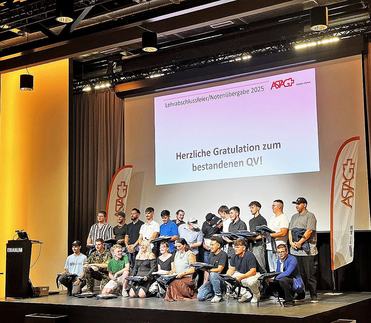 Le 4 juillet 2025 a eu lieu la cérémonie de remise des diplômes des spécialistes du transport routier de l’école professionnelle Limmattal. A 18h45, les 22 spécialistes du transport routier et un praticien du transport routier sont arrivés à l’Ebianum à Fisibach. Après un apéritif, Romaine Roggenmoser, présidente de l’ASTAG Zurich, et August Binggeli, responsable des apprentis de la section Zurich des Routiers Suisses, ont adressé quelques mots aux diplômés. Ensuite, les certificats de capacité tant attendus ont été remis. Comme les années précédentes, les trois meilleures notes ont été annoncées. Cette année, les trois meilleures étaient toutes des femmes, avec des notes comprises entre 5,2 et 5,6. Cela montre que les femmes ont le vent en poupe. Les diplômés ont reçu un chargeur sans fil de la part de nos trois sections et un diplôme ainsi qu’un sac étanche de la part de la maison mère. Après la partie officielle, un copieux buffet de salades, des grillades et un buffet de desserts ont été servis. Ceux qui le souhaitaient ont ensuite pu visiter l’Ebianum. Alors que la plupart des participants sont rentrés chez eux vers 23h, quelques diplômés sont restés et ont passé la nuit sur place.