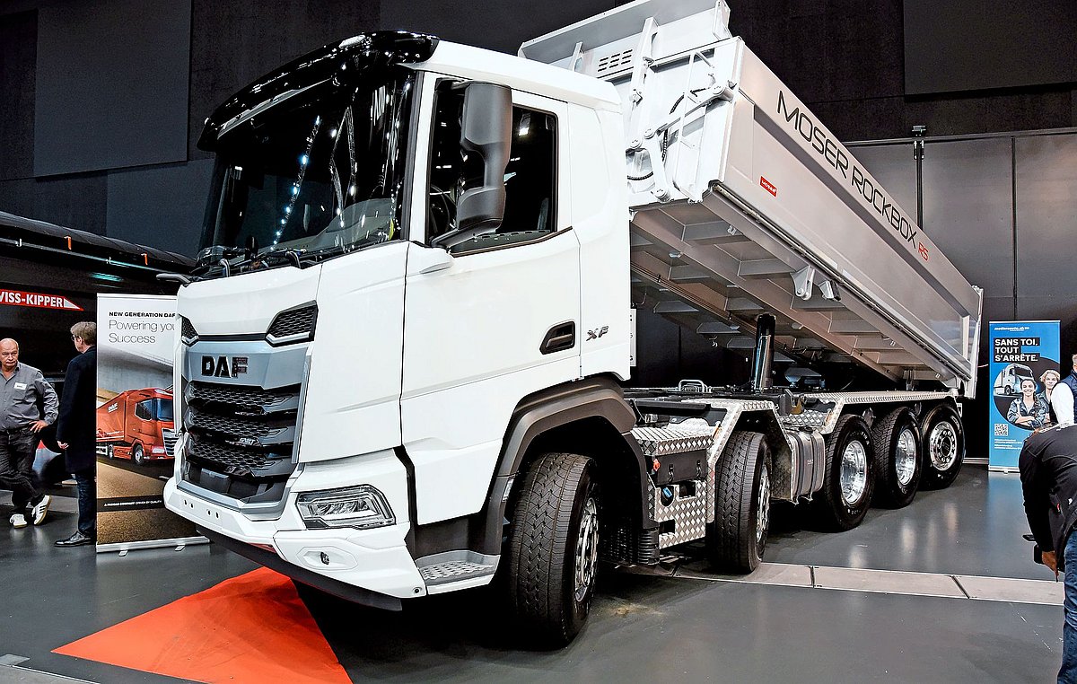 Mais le XF était particulièrement intéressant dans sa configuration à cinq essieux, très appréciée en Suisse. Avec un essieu traîné, ce type de véhicule est désormais produit directement à la chaîne dans l’usine, ce qui permet de réduire à la fois le délai de livraison et le prix. Si d’autres configurations d’essieux sont souhaitées par le client, DAF propose bien sûr également d’autres solutions de type 10×4.