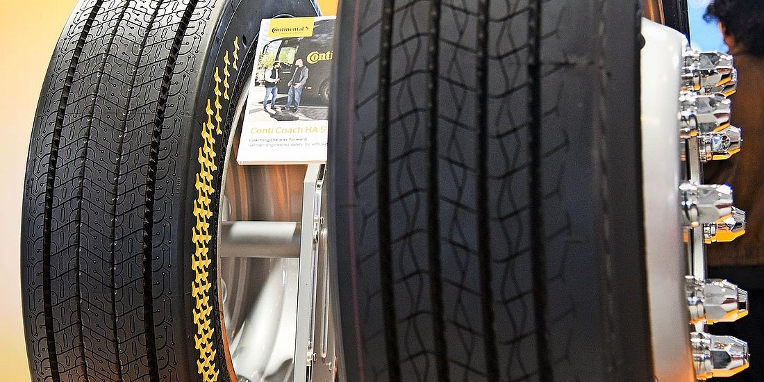 Faible résistance au roulement, kilométrage élevé et bruit réduit: avec le Conti Urban HA 5 NXT, Continental répond aux exigences actuelles en matière de pneus pour bus urbains. La compatibilité écologique fait également partie de ces exigences. C’est pourquoi le nouveau pneu est composé à 60 % de matériaux renouvelables, recyclés et certifiés ISCC PLUS.