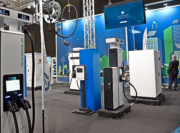 Les différents fournisseurs d’énergie qui ont présenté leurs produits à Berne proposent parfois des solutions très innovantes, comme par exemple Repower, qui collabore avec JJ Industrial Solutions pour le matériel et qui s’apprête à proposer «My charging slot», «ma fenêtre de recharge» en français. Repower souhaite mettre en relation les propriétaires d’infrastructures de recharge et les logisticiens disposant de camions électriques. Dans la mesure du possible, l’infrastructure de recharge doit être mieux exploitée en permettant à des entreprises «externes» de réserver des créneaux de recharge à certaines périodes. Cela offre au secteur des transports des possibilités de recharge supplémentaires et une plus grande autonomie, et permet aussi de mieux amortir l’infrastructure de recharge.