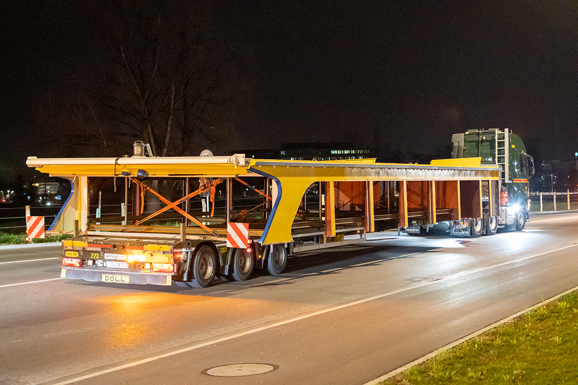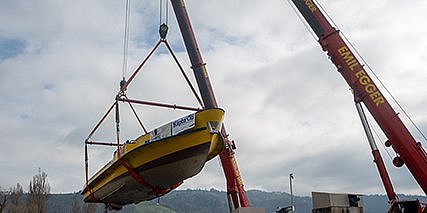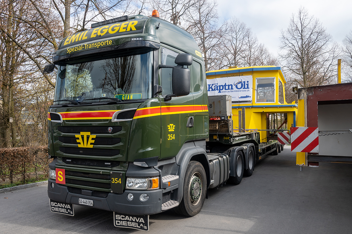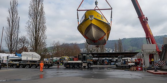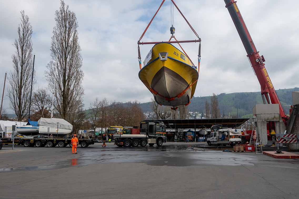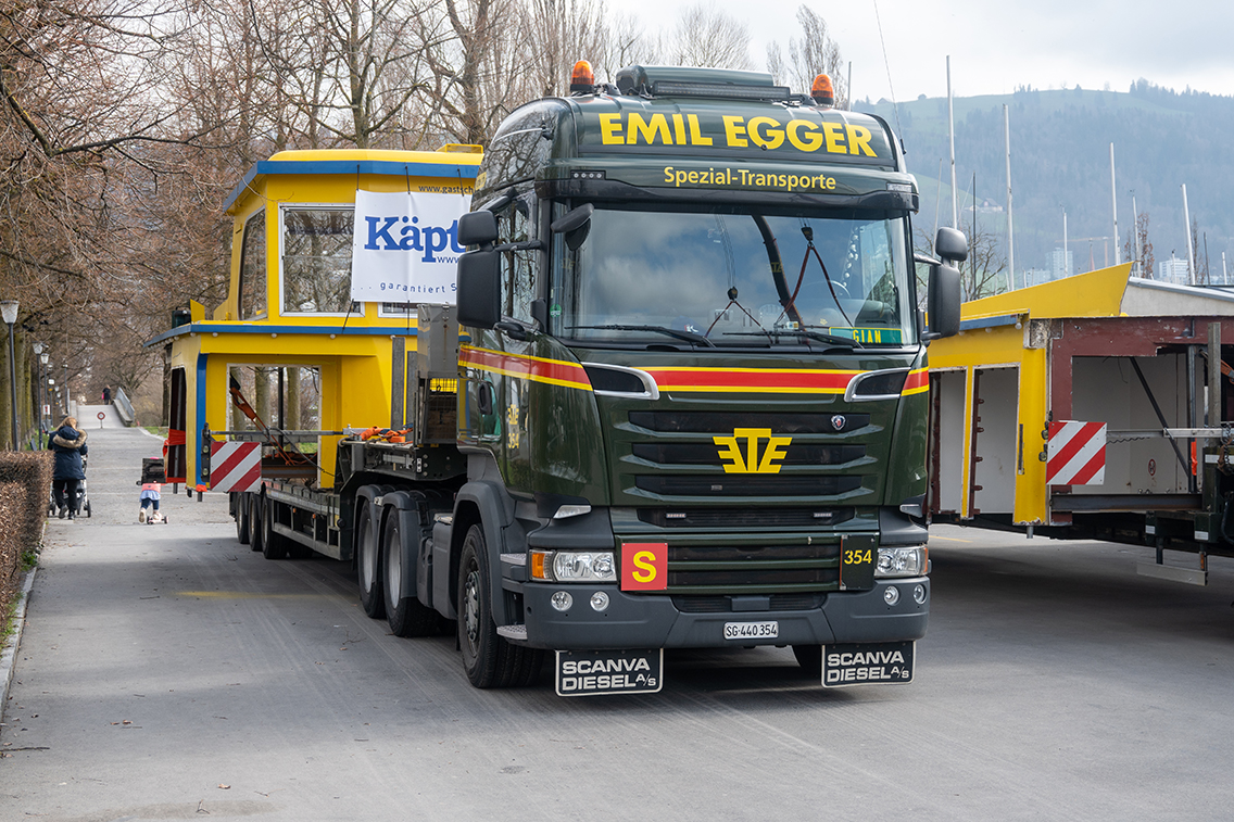 Le bateau de passagers zougois MS Yellow a trouvé une nouvelle patrie : le lac de Bienne. Le capitaine Olivier Perrot, connu sous le nom de Käptn Oli, a acquis le bateau jaune et l'exploitera bientôt sur le lac de Bienne sous le nom de MS Jolie. Mais avant cela, il doit être remonté. Pour le transport, effectué par Emil Egger AG, le bateau a été démonté. Il a d'abord été vidé de sa substance, puis la timonerie a été séparée de la coque. Le transport nocturne s'est déroulé du port de Zoug à l'autoroute, puis à Sugiez, via Berne, jusqu'au canal de la Broye. Le convoi était composé de trois camions.