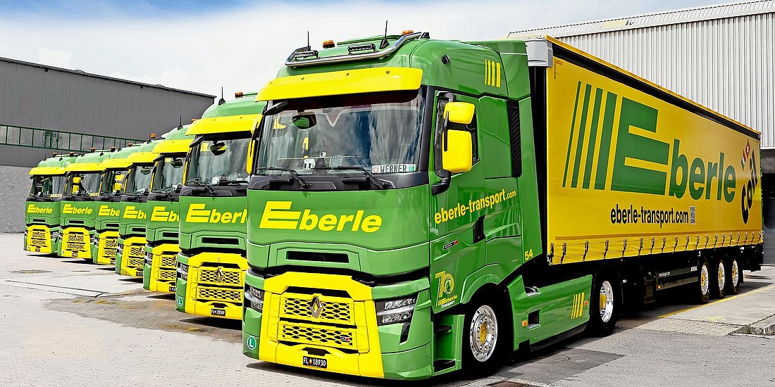 Aujourd’hui, la flotte d’Eberle Transport SA compte environ 60 camions et la plupart d’entre eux sont de la marque Renault Trucks. Il y a de bonnes raisons à cela: d’une part, on est satisfait des camions, d’autre part, le garage Renault Trucks le plus proche se trouve non seulement au coin de la rue, mais également sur le même site que l’entreprise Eberle Transport SA à Buchs. Il porte le nom de J. Eberle SA et son directeur n’est autre que Joachim Eberle, également un frère de Barbara et Christoph Eberle! «Bien sûr, c’est pratique de pouvoir faire le service à proximité de l’entreprise», explique Christoph Eberle. Il y a vingt-quatre ans, l’entreprise de transport et le garage ont été réunis sur le terrain acquis à Buchs (SG). Outre les transports nationaux et internationaux et les transports intermodaux, l’entreprise familiale effectue également des transports régionaux, des travaux de grutage et de déneigement. C’est Reto Eberle, un autre frère des Eberle déjà mentionnés, qui est responsable de la gestion de cette partie de l’entreprise.
