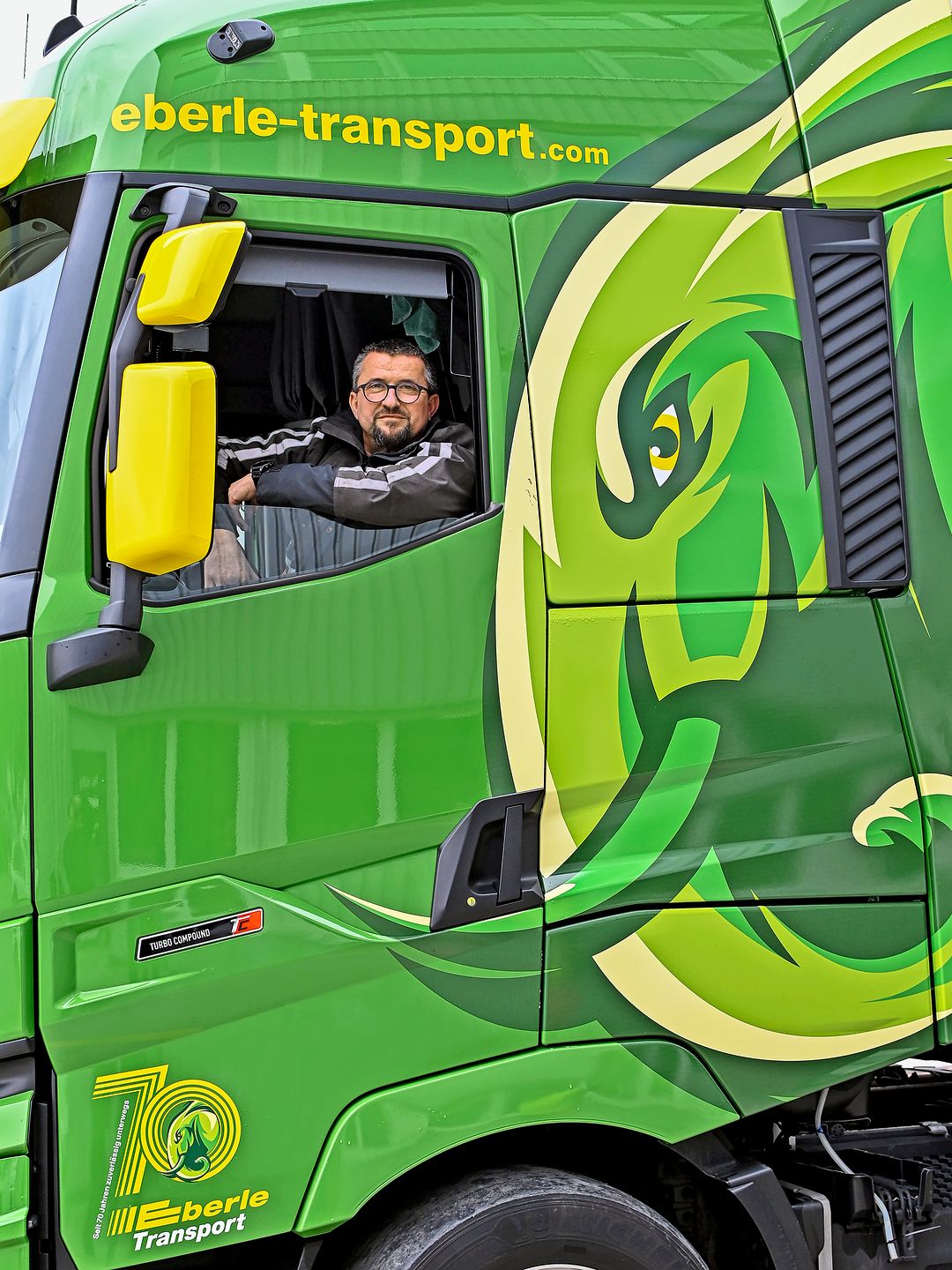 Rester plusieurs décennies chez le même employeur, cela devient de plus en plus rare; le chauffeur Lars Sturm (56 ans) est pourtant employé depuis trente-quatre ans chez Eberle Transport SA. «Tout se passe bien ici», déclare-t-il brièvement et simplement. «Cette entreprise est très familiale, on y prend soin des collaborateurs.» Il se souvient encore très bien du moment où la marque Renault Trucks a fait son entrée dans la flotte d’Eberle Transport SA. «C’était il y a plus de trente-trois ans», dit-il. «J’ai d’abord conduit un Magnum.» Aujourd’hui, ce sont les derniers véhicules de la série T de Renault Trucks que les chauffeurs d’Eberle conduisent. L’an dernier, l’entreprise a fait une grosse acquisition: elle a acheté 20 Renault Trucks T. Lars Sturm roule lui aussi avec l’un de ces nouveaux camions et il en est très satisfait. «Le confort s’est encore amélioré et ce véhicule ne manque de rien», explique ce chauffeur expérimenté. «La cabine, en particulier, est mieux isolée que celle de son prédécesseur.» Il le ressent d’autant mieux qu’il roule souvent à l’étranger et passe régulièrement la nuit dans son camion. C’est surtout dans le nord de l’Italie qu’il se déplace avec son semi-remorque. Il transporte toutes sortes de marchandises, du vin aux pièces d’acier en passant par les marchandises de groupage.