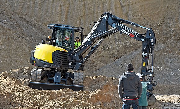 Les essais en conditions réelles, organisés pour la première fois sous cette forme en 2022, ont été mis sur pied dès le début conjointement par Merbag et Menzi Muck AG. «Nous ne sommes pas concurrents, mais nous avons de nombreux contacts avec la même clientèle», déclare Nathanael «Nat» Baumgartner de la société Merbag. En conséquence, de nombreux clients de l’un sont également clients de l’autre, comme le confirme Ivo Stadelmann de chez Menzi Muck.