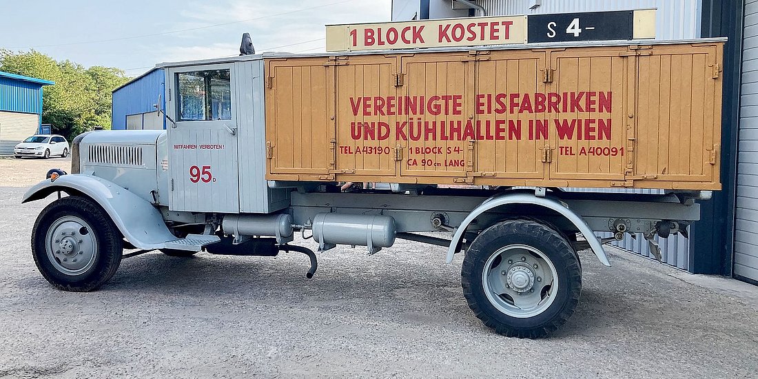 Le moteur diesel à 4 cylindres de 5,3 litres, commandé par une boîte à cinq vitesses (dans le Land autrichien de Styrie, il existe encore un Saurer un peu plus ancien avec un moteur à essence), mobilise une puissance raisonnable de 70 ch. C’est relativement peu, si l’on considère que ce «camion à glace» était également utilisé avec une remorque. De plus, il s’agissait pour lui de livrer des blocs de glace à des clients installés dans des endroits dont la situation topographique était plutôt difficile.