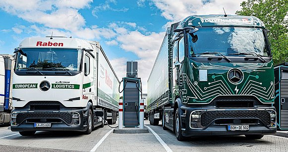 Outre le développement de sa propre infrastructure de recharge, Daimler Truck participe, avec d’autres partenaires de l’industrie des poids lourds, à l’extension de l’infrastructure de recharge publique et semi-publique (mot clé Milence). Celle-ci est spécialement conçue pour les camions, afin d’offrir suffisamment d’espace de manœuvre et de puissance au niveau des prises lors de la recharge. Le réseau public devrait compter environ 1700 points de recharge dans toute l’Europe, tandis que le réseau semi-public, dont les chargeurs sont principalement situés dans les dépôts, devrait en compter jusqu’à 3000.
