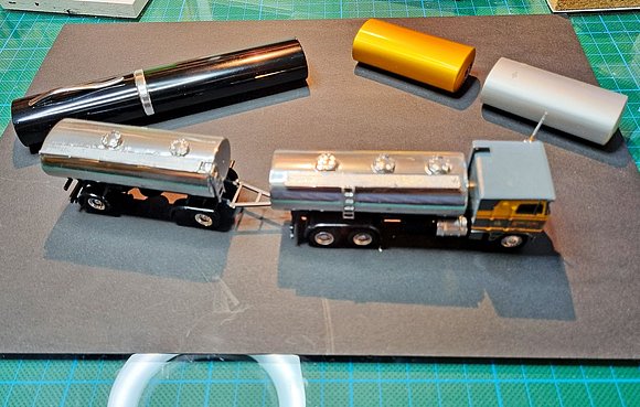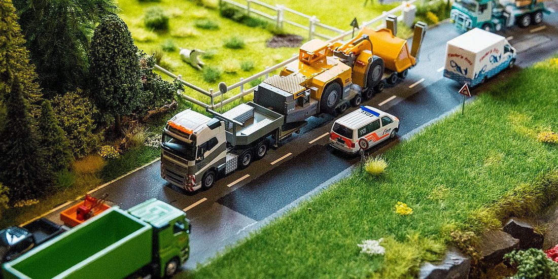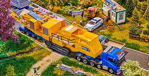 Cinquante-cinq ans, c’est long: le passe-temps d’Alexander Demme a survécu à dix présidences américaines, de Nixon à Trump en passant par deux générations de Bush. Les techniques ont également évolué, mais les matériaux de base, le polystyrène, le laiton et d’autres plastiques, sont restés les mêmes. L’impression 3D et une grande loupe ont été ajoutées à la panoplie, car, avec l’âge, la vue d’Alexander a baissé. Mais le sens du détail est resté. Et en plus de ce sens du détail, il y a toujours la volonté de résoudre des problèmes dont un non-modéliste n’a aucune idée. Heureusement que d’autres amateurs le savent également. Prenons un exemple: récemment, Alexander a créé un modèle de cuve à vin utilisé par la société Friderici. Le gros problème était de trouver quelque chose qui convienne pour créer une cuve ovale, car cette variante de construction n’existe pas, ni chez les grands, ni chez les petits fabricants de modèles réduits. Qu’est-ce qui pourrait donc l’aider? La première tentative a consisté à prendre un briquet Bic vide, qui se rapproche assez des proportions souhaitées. Mais il est quasiment impossible de coller ce plastique, il a donc fallu continuer à chercher. Alex a trouvé ce qu’il cherchait dans un magasin Landi, plus précisément dans le rayon des lunettes de lecture, bien que, dans le cas présent, les étuis à lunettes aient été plus intéressants que les lunettes elles-mêmes. Il faut également résoudre des problèmes similaires pour les essieux ou les antennes. Si, autrefois, on les fabriquait soi-même à partir de polystyrène chauffé ou si l’on utilisait des kits de montage provenant du modélisme militaire, on utilise aujourd’hui généralement des fils fins ou des poils de brosse. L’exposition anniversaire a eu lieu les samedi 15 et dimanche 16 mars derniers. Pour cela, de nombreux modèles ont dû être emballés et joliment disposés au premier étage du Restaurant de la Gare à Brügg. Un diorama (représentation d’un paysage) présentait une circulation intense de poids lourds. Outre les différents camions en circulation, on pouvait également voir des bâtiments en construction et quelques petits transports spéciaux.