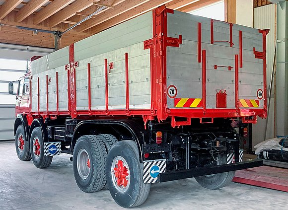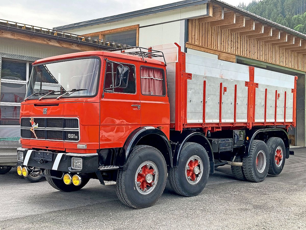 Ce camion a été réparé et remis en état il y a quelques années par un amateur italien de véhicules anciens dans la région d’Imola. Lorsque ce dernier s’en est séparé en 2022 pour des raisons de place, l’occasion s’est présentée d’importer cet imposant camion à 4 essieux en Autriche. Le type 691 a d’ailleurs remplacé à partir de 1971 le légendaire 690, également appelé «Baffo» (moustache) en raison de sa calandre caractéristique.