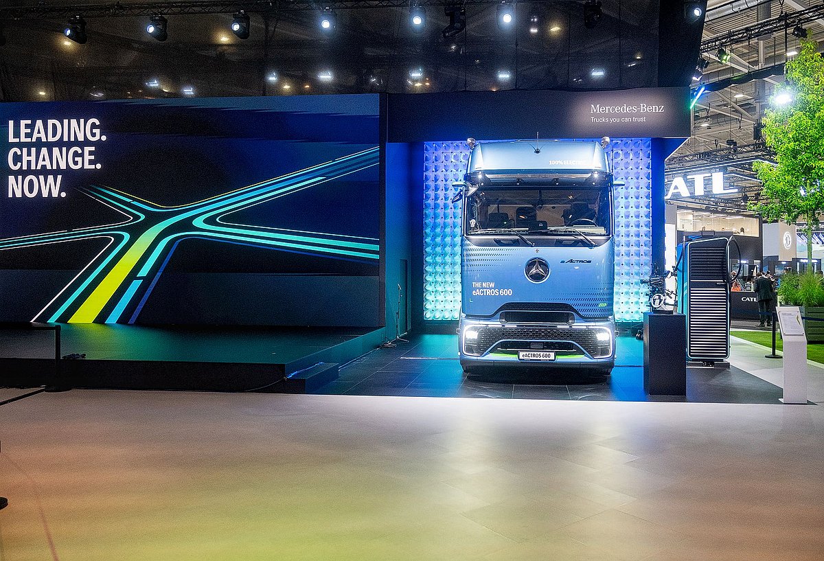 A l’IAA, on l’a vite remarqué: ce qui, du point de vue suisse, doit être proposé par les constructeurs automobiles pour que le secteur des transports abandonne le diesel est déjà disponible. L’autonomie des camions électriques à batterie est suffisante pour de nombreuses applications; ils font déjà leurs preuves au quotidien et les versions longues distances comme le Mercedes-Benz eActros 600, qui a été élu «International Truck of the Year 2025» à l’IAA, permettent même de gagner encore en autonomie. Que ce soit Mercedes-Benz Trucks, MAN, Volvo Trucks, Scania, DAF, Renault Trucks ou IVECO, tous proposent des camions électriques à batterie.