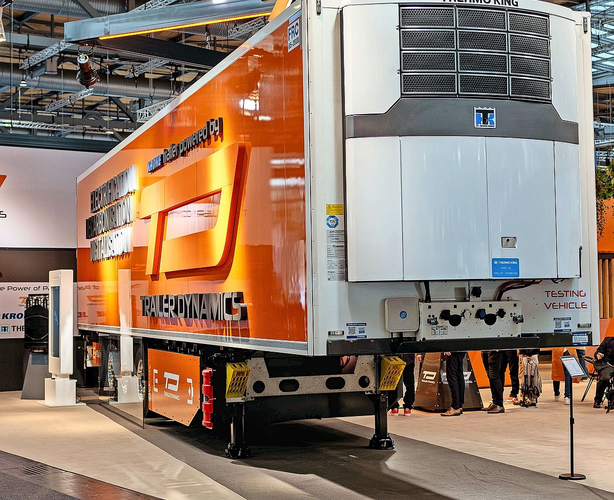 Les véhicules tracteurs et les véhicules à moteur ne sont pas les seuls à être équipés d’un système de propulsion: à l’occasion de l’IAA, Trailer Dynamics a présenté une semi-remorque qui assiste l’entraînement primaire du tracteur. L’eTrailer est synchronisé avec chaque tracteur de semi-remorque au moyen d’une commande en temps réel. L’énergie nécessaire à l’entraînement supplémentaire provient de la batterie de traction de la remorque.