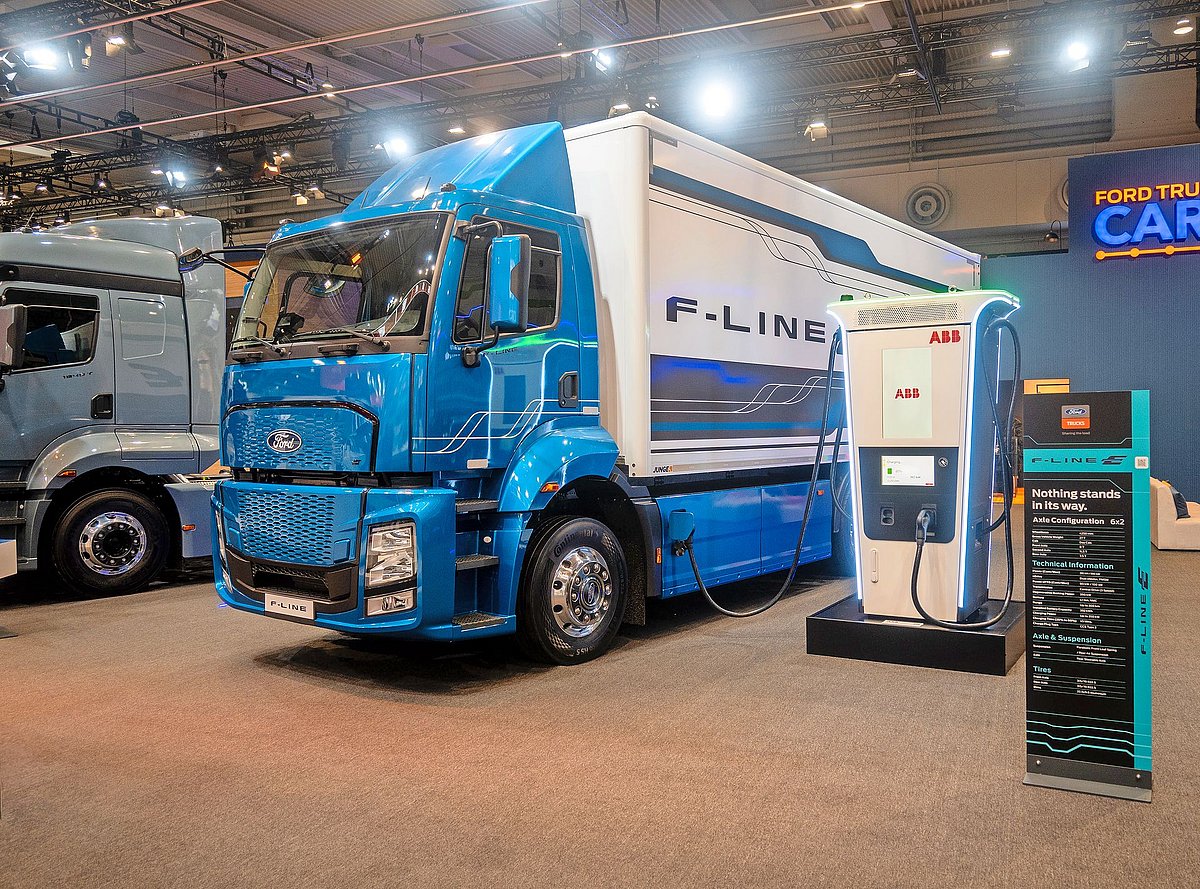 Ford Trucks veut aussi utiliser de l’hydrogène à l’avenir: le constructeur, dont la série de modèles F-MAX est officiellement distribuée en Suisse depuis peu, a développé et testé avec succès un six cylindres en ligne fonctionnant à l’hydrogène, l’Ecotorq H2: «Ce groupe propulseur devrait être utilisé dans un avenir proche sur les tracteurs de chez Ford Trucks.» Mais c’est un autre véhicule que l’on pourra voir prochainement en Suisse: Ford Trucks a présenté une variante électrique à batterie de la série F-LINE.