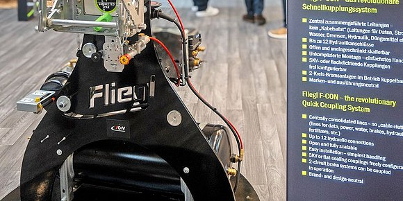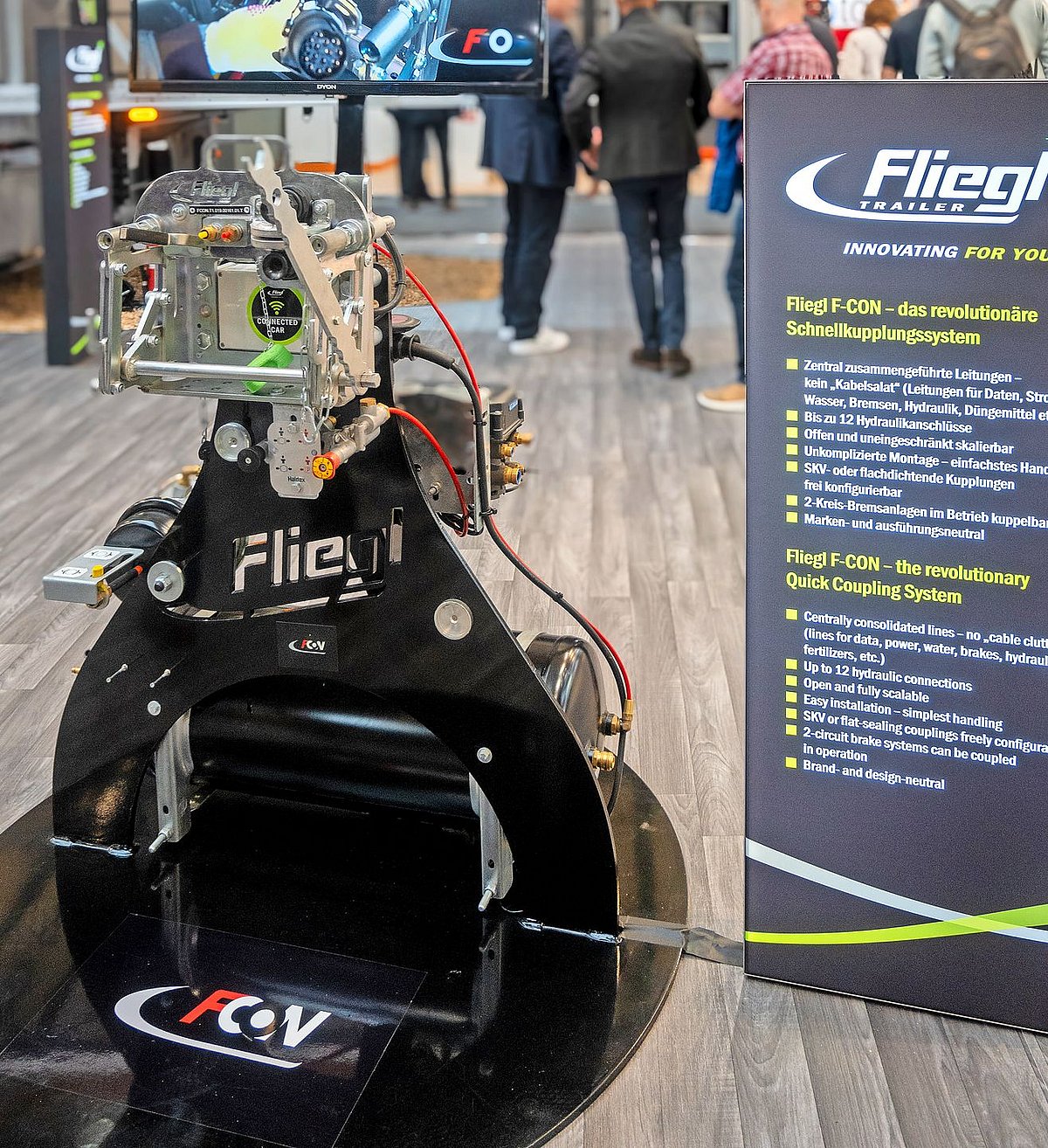 Outre les constructeurs de véhicules, de nombreuses entreprises proposant d’autres produits pour le transport routier étaient présentes à Hanovre. Le constructeur de remorques Fliegl, par exemple, a développé le système d’attelage rapide F-CON et l’a présenté à l’IAA. Ce système facilite la connexion et la déconnexion des conduites d’air comprimé et des câbles, et améliore la sécurité au travail. En effet, avec le système F-CON monté sur le côté, le conducteur n’a plus besoin de grimper derrière le véhicule et peut connecter les raccords en un tour de main en se tenant debout à côté du véhicule.