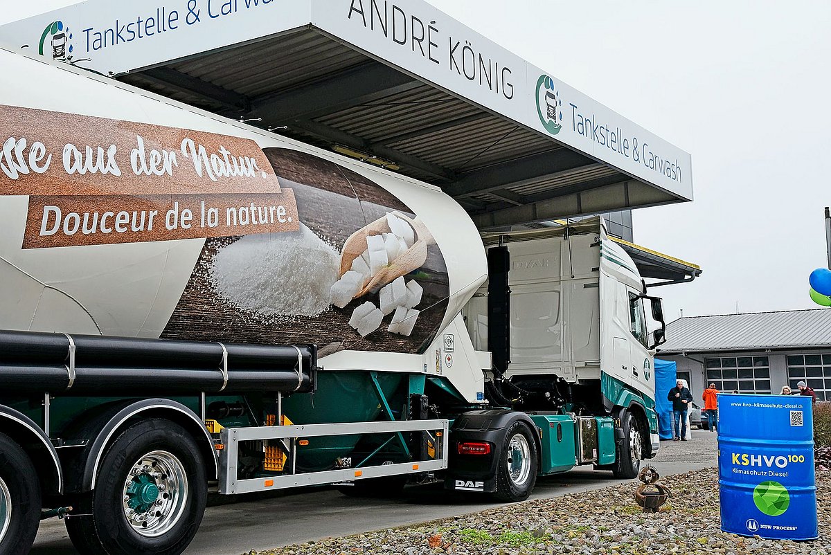 HVO signifie Hydrotreated Vegetable Oils. Ce carburant est fabriqué à partir d’huiles alimentaires usagées, de graisses animales issues de la transformation du poisson et de l’industrie alimentaire, ainsi que de déchets provenant de la production de cellulose. Dans une approche de type «du puits à la roue», le HVO permet une réduction des émissions de CO2 de 85 à 90 % par rapport au diesel d’origine fossile. Les transporteurs et les entreprises l’ont compris depuis longtemps et ont commencé à alimenter de plus en plus leurs camions et leurs véhicules utilitaires avec du HVO. Il y a un an, cette possibilité s’est également ouverte aux particuliers, après que les bases légales aient été posées et que la première station-service publique HVO100 de Suisse ait été inaugurée à Lyss chez André König (voir Routiers édition 02/2025).