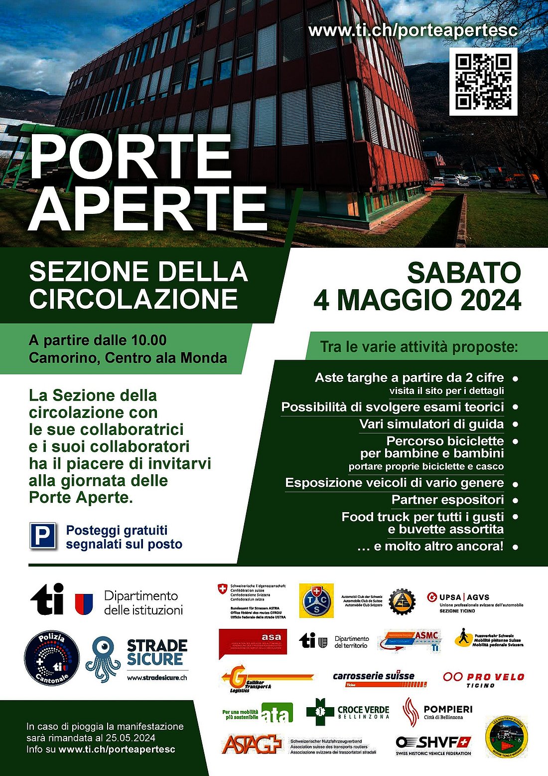 Ma non finisce qui, tante altre proposte interessanti saranno garantite dai numerosi partner (visitate il sito www.ti.ch/porteapertesc per maggiori dettagli) che avranno modo di presentarsi nel corso della manifestazione portando anche autoveicoli speciali i quali non sono facilmente accessibili al grande pubblico tutti i giorni.