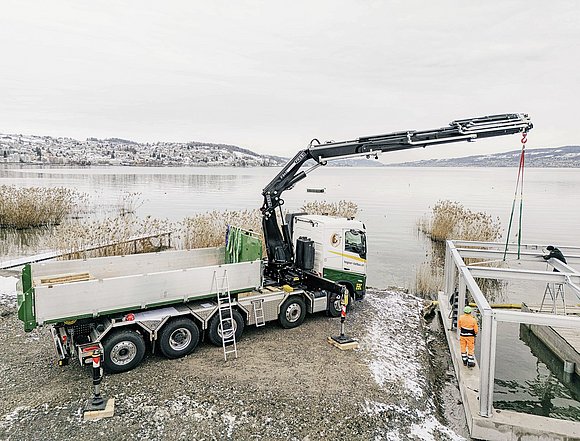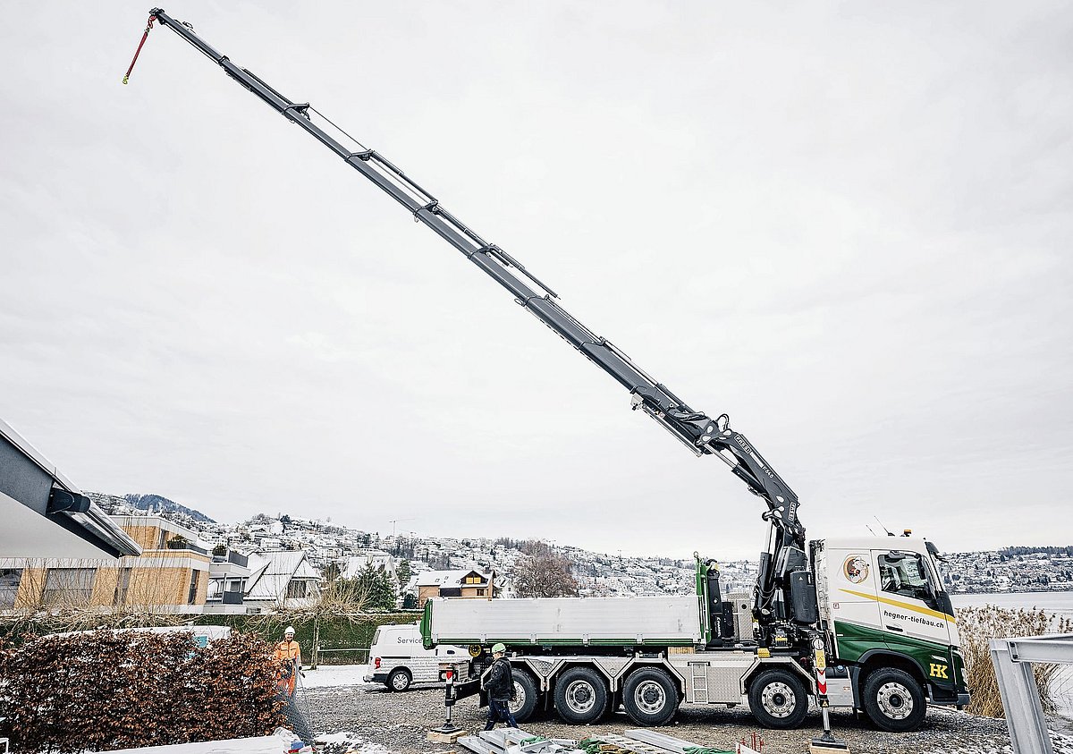«Chez nous, les voies décisionnelles sont courtes, ce qui nous permet de réagir immédiatement et de manière flexible. Cela nous permet d’intervenir rapidement en cas de problèmes survenant à court terme et de trouver une solution optimale.» La dernière acquisition de Konrad Hegner SA, le Volvo Trucks FH500 10×4, un camion à 5 essieux de 500 chevaux, s’inscrit dans cette optique. «Nous sommes principalement une entreprise de génie civil», a déclaré Marcel Hegner, directeur de Konrad Hegner SA. «Grâce à notre camion-grue, nous pouvons en outre effectuer des travaux de grutage, notamment dans le domaine des activités faisant appel à des paysagistes.» Comme ce Volvo FH500 dispose également d’un crochet, l’entreprise est particulièrement flexible. «Nous pouvons donc aussi utiliser ce véhicule dans l’exécution de travaux publics», ajoute Marcel Hegner.