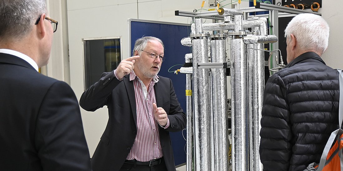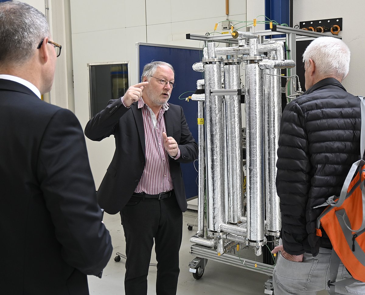 Comme le montre de manière exemplaire une installation pilote implantée au MOVE, l’hydrogène peut être produit à partir de l'électricité solaire excédentaire. L'énergie ainsi stockée peut être utilisée ultérieurement comme carburant, par exemple dans des véhicules agricoles ou les véhicules utilitaires. Comme le H2 doit être refroidi, la logistique et le ravitaillement sont plus compliqués que pour les carburants traditionnels. Le MOVE exploite une station-service H2 pour l'énergie stockée à partir de l'installation solaire et la teste dans la pratique à l'échelle 1:1.