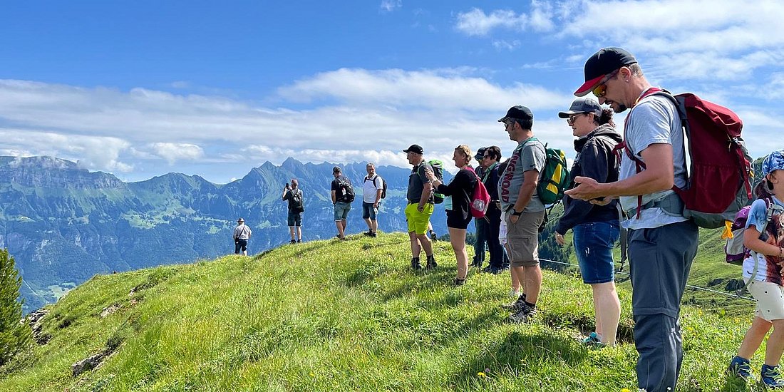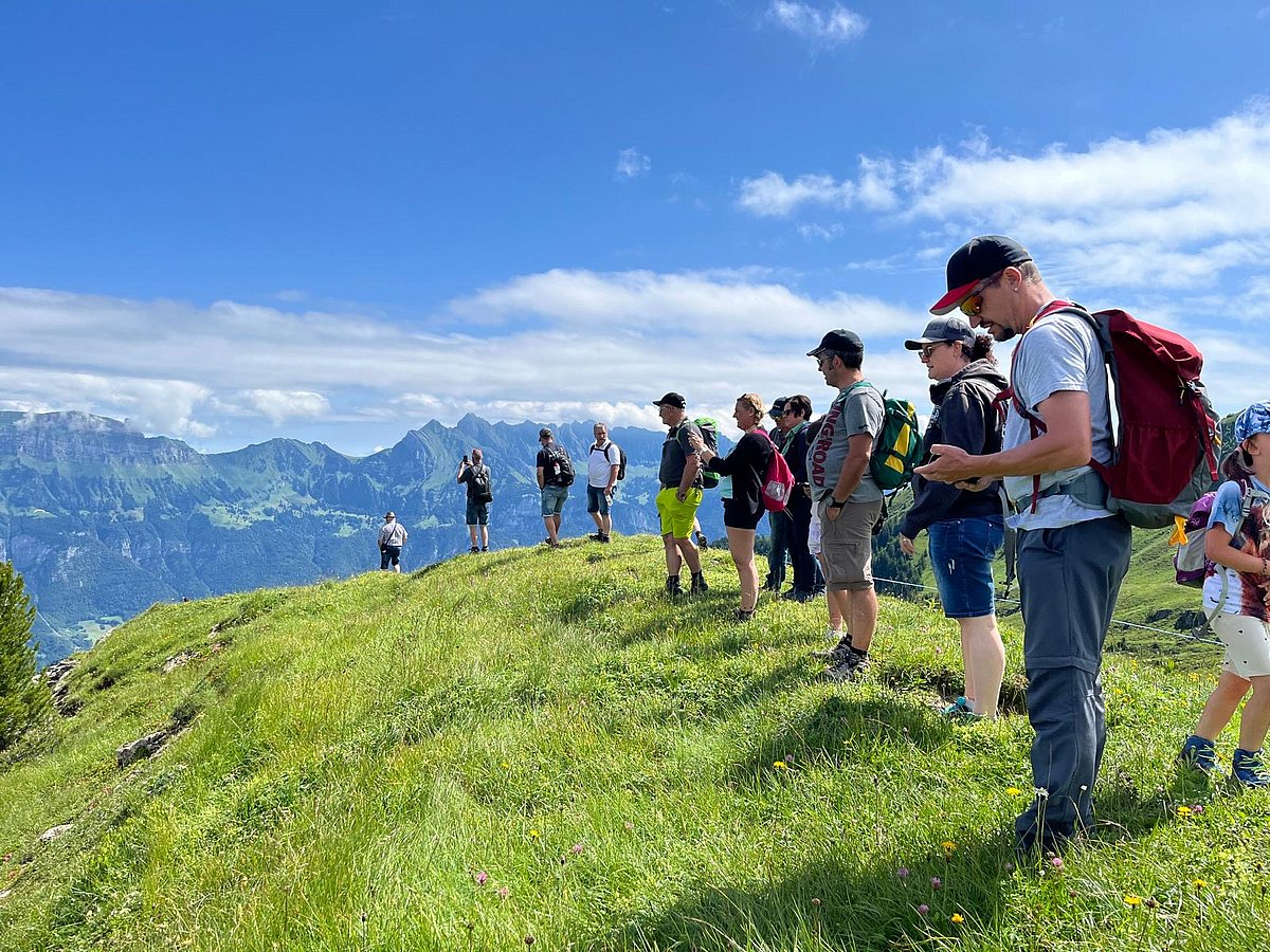 Enfin un peu de soleil, alors en route pour la montagne: le dimanche 14 juillet 2024, les membres de la section Glaris qui apprécient la randonnée se sont retrouvés avec leurs familles au parking de Tannenboden Flumserberg. Notre caissier a distribué les billets et nous voilà déjà à bord de la télécabine qui nous a emmenés sur le Maschgenkamm. Une fois arrivés, c'est notre président et guide du jour Berni Schnyder qui nous a accueillis. La randonnée s'est poursuivie en direction de la vallée, à travers la magnifique nature alpine encore un peu humide. Nous avons traversé des pâturages, rencontré des marmottes, admiré des rhododendrons et des gentianes, tout en bénéficiant d'une vue extraordinaire. Notre destination se rapprochait de plus en plus. C’est ainsi que nous nous sommes installés près de la station supérieure de Chrüz pour un barbecue où chacun a pu faire chauffer et déguster le repas qu'il avait apporté. Le temps a passé en discutant tranquillement ou en prenant un verre à midi. Cependant, le temps fort de la journée était encore à venir: ceux qui le souhaitaient ont pu descendre la dernière partie en luge d'été avec le «Floomzer» et ceux qui trouvaient ce moyen de transport trop rapide pouvaient utiliser le télésiège. Arrivés au Tannenboden, tout le monde s'est encore promené jusqu'au restaurant Molseralp où nous avons pu déguster une boisson fraîche et une glace. Un grand merci à toutes et à tous! Ce fut une belle journée fort réussie. A ne pas oublier: le 11 août déjà, nous effectuerons une randonnée à vélo. Si vous souhaitez y participer, inscrivez-vous dès maintenant sur le site www.routiers-glarus.ch, cela nous ferait plaisir. (Daniela Röthlin)