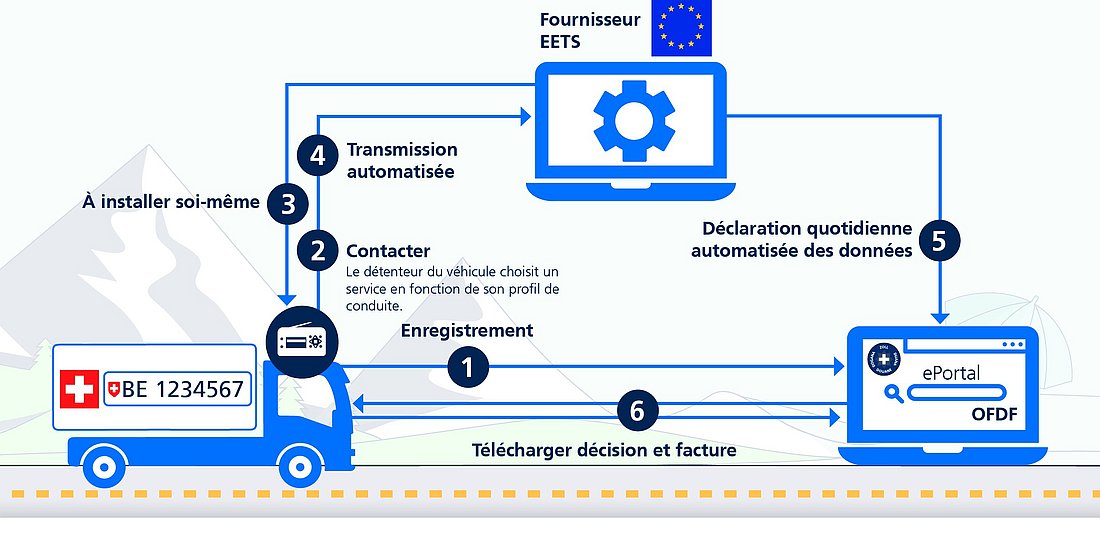 Ces dernières semaines, plus de la moitié des plus de 12 000 transporteurs routiers établis en Suisse ont reçu une lettre de l'OFDF. Les préparatifs pour la RPLP III vont bon train et un essai pilote est prévu en novembre. A cette occasion, l'Emotach sera remplacé.