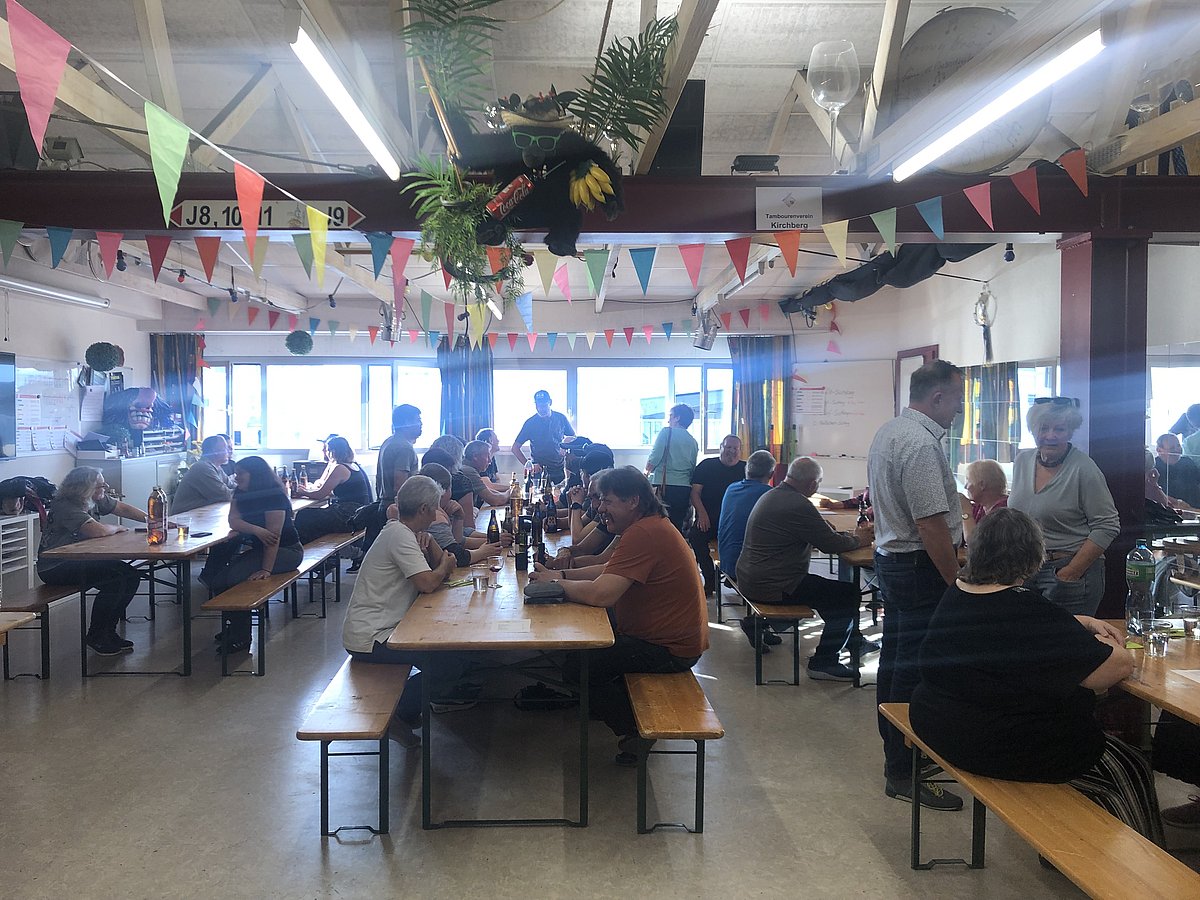 Près de 60 personnes, du kir, 17 litres de sauce bolognaise, 10 litres de sauce carbonara, six litres de sauce «à la Jacky», de délicieux desserts, une bonne ambiance, de sympathiques discussions, tels sont les éléments qui ont marqué la soirée spaghetti de cette année. Le 13 avril dernier à 16.30 h, le comité s'est réuni au Drum In, à Kirchberg, pour préparer cette soirée spaghetti. Chacun reçoit brièvement des instructions et c'est parti. 60 personnes doivent être nourries et tout doit être préparé à l'avance. Installer les bancs et les tables, faire chauffer la sauce, monter la boutique, etc. Bientôt, les premiers invités arrivent. Ils sont accueillis avec un kir en guise d'apéritif et l'équipe de cuisine se met à préparer des spaghettis, qui arrivent bien sûr fraîchement préparés sur la table. Chacun peut choisir sa propre sauce, qu'il s'agisse de bolognaise, de carbonara ou de sauce «à la Jacky». Il est bien sûr possible de se rendre plusieurs fois au buffet et de tout goûter.
