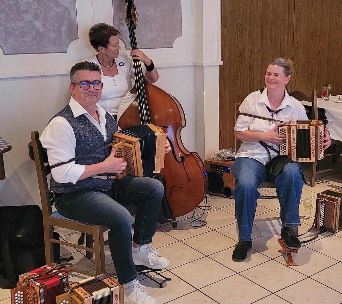 Le deuxième événement figurant au programme de notre année d'anniversaire était la soirée spaghetti du 18 mai. A cette occasion, la salle du restaurant Engel à Emmetten était ouverte aux membres à partir de 18 heures. La vingtaine d'affamés présents ont été très étonnés d'être accueillis en musique par le trio Zämägwürflet. Mais il n’étaient pas encore au bout de leurs surprises, le menu était déjà servi sur la table et ce soir, les spaghettis étaient accompagnés de piccata. Eh oui, pour le 50e anniversaire, le comité ne se laisse pas aller et organise chaque événement de manière un peu spéciale. Mais le comité s'est montré très inquiet, car notre porte-drapeau Markus «Kusi» Scheuber n'était pas à l'heure, contrairement à son habitude. En fait, il était en train de nettoyer la piscine, tout à fait détendu, lorsque nous l'avons appelé. Lorsqu'il est arrivé avec son épouse Irène, nous avons enfin pu commencer. Après la salade composée, nous avons pu goûter les spaghetti, les quatre sauces étaient toutes délicieuses. Et la viande était vraiment excellente, nous étions tous d'accord sur ce point. Une glace à la fraise et à la vanille nous a été servie pour le dessert. Grâce au bel accompagnement musical proposé, nous avons pu faire une petite danse et le temps a passé encore plus vite que d'habitude, si bien que ce n'est que vers minuit que les lumières se sont éteintes. Nous attendons avec impatience les prochaines manifestations et nous adressons encore un grand merci à tous ceux qui ont fait le déplacement ce samedi 18 mai. (Claudia Amrein)