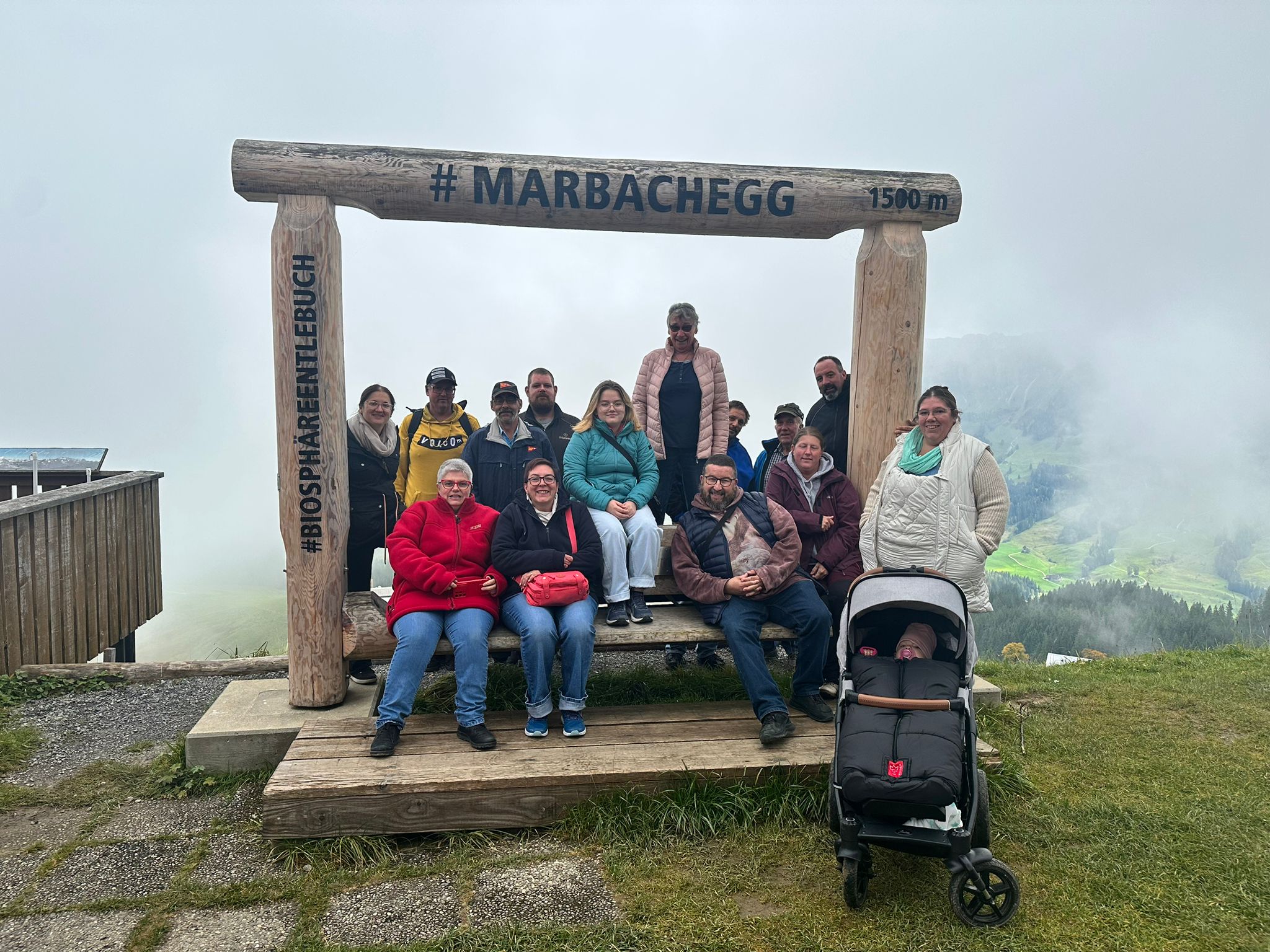 Le 5 octobre, notre section est partie avec notre membre et chauffeur Urs Kleibenzett`l pour une excursion très impressionnante. Nous sommes partis à 7h30 de Gurmels pour nous rendre dans une ferme de buffles d'eau dans l'Emmental. Arrivés sur place, malheureusement par des températures fraîches et un épais brouillard, nous avons pu prendre place dans l'étable et déguster du café et des petits pains aux poires faits maison. Après nous être un peu réchauffés, Monsieur Rängli nous a raconté comment ils sont arrivés aux buffles d'eau et quelles sont leurs particularités. L'histoire était très intéressante et instructive, nous ne pouvons que recommander une visite chez les buffles d'eau. Ensuite, sur le chemin de Marbach, nous nous sommes arrêtés à la fromagerie de démonstration et avons acheté du fromage. A Marbach, nous avons ensuite apprécié le trajet en télécabine jusqu'au Marbachegg. Arrivés en haut, nous étions attendus au restaurant pour l'apéritif. Après l'apéritif, nous avons dégusté un très bon déjeuner. Pendant que nous mangions et buvions, nous avons beaucoup discuté ensemble. Le temps n'a malheureusement pas eu pitié de nous, les Fribourgeois, il est resté brumeux avec de légères éclaircies qui nous ont parfois permis d'admirer brièvement la vue. Vers 15 heures, la télécabine nous a ramenés dans la vallée, où nous avons pris le bus pour rentrer chez nous.