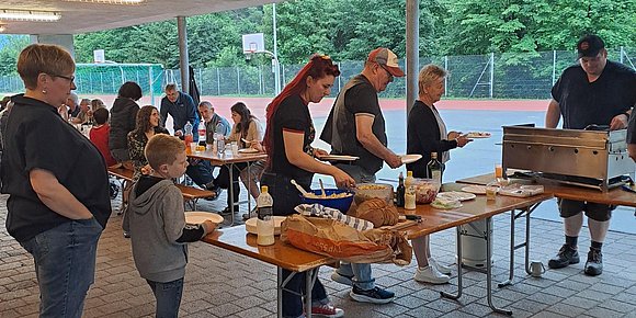 Le samedi 14 juin, nous avons organisé notre barbecue annuel, comme toujours sur le terrain de sport Loch à Bürglen. La journée s'est déroulée par un temps chaud et magnifique pour les grillades, mais lorsque les premiers membres et leurs amis sont arrivés vers 17h00, le ciel s'est brièvement ouvert et il a commencé à pleuvoir. Grâce à l'abri sur le site, nous sommes restés au sec. Après l'apéritif, notre maître-grilleur Michi Schuler a pu faire monter la température du gril, de sorte que les nombreux steaks et saucisses ont été magnifiquement préparés pour être dégustés. Le tout était accompagné de diverses salades créées par la cuisine du comité. Après ce repas copieux et délicieux, la convivialité a été de mise et l'un ou l'autre kilo a été gagné autour d'un café, de boissons fraîches et d'un dessert. Le soleil est revenu et les enfants ont pu se défouler sur le terrain de sport. Ce fut à nouveau une soirée agréable et longuement réussie, un grand merci à tous ceux qui ont participé à la soirée barbecue et au comité pour l'organisation. Actuaire Dani Betschart