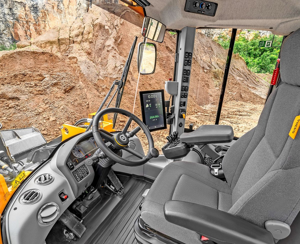 Quiconque a déjà constaté la différence existant entre un camion diesel et un camion électrique ne s’étonnera pas de la différence constatée dans le domaine des engins de chantier. Le L120 Electric est équipé de trois moteurs électriques, deux pour la propulsion/récupération et un pour le système hydraulique. Le silence au démarrage oblige à jeter un œil aux voyants lumineux pour vérifier l’état du système. Ensuite, le silence et l’absence de vibrations persistent tant que l’on n’effectue pas de travaux de terrassement ou que l’on ne remplit pas la pelle en puisant dans un tas de matériaux. A l’intérieur du hangar à gravier, couvert et en grande partie fermé, sur le site de la société Merz Matériaux de construction SA à Gebenstorf, l’avantage des véhicules électriques était évident. Les chargeuses sur pneus soulèvent certes beaucoup de poussière lors des manœuvres, tout comme les camions, mais l’atmosphère n’est pas polluée par le bruit des moteurs ni par les émissions nocives. Selon Volvo CE, le modèle L120 Electric offre en outre des performances équivalentes à celles de son homologue diesel. La plupart des tâches légères et moyennement lourdes peuvent être effectuées avec une seule charge tout au long d’une journée de neuf heures. Pour une recharge intermédiaire, un chargeur rapide (jusqu’à 165 kW) ou le système de stockage d’énergie mobile PU500 permettent d’augmenter la capacité de 20 à 80% en un peu plus d’une heure. A cause des batteries, l’arrière est plus long de 33 cm par rapport au L120 diesel, tandis que l’angle de rampe, l’angle de talus et le rayon de braquage restent inchangés. Alors que Volvo CE utilise des batteries NMC dans d’autres machines, le modèle L120 Electric est équipé de batteries à technologie LFP. Celles-ci sont certes un peu plus lourdes, mais elles supportent mieux les charges rapides et ont une durée de vie environ deux fois plus longue.