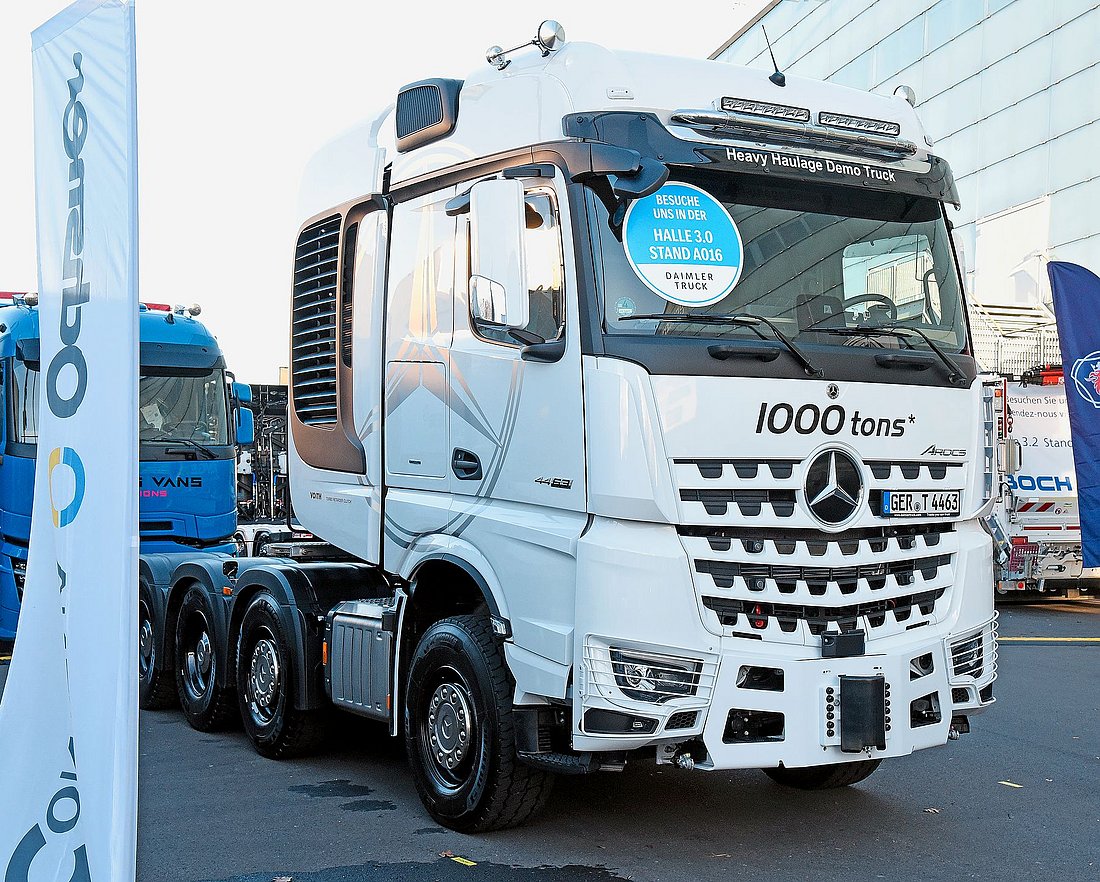 Mercedes a également présenté le modèle spécial «Dream Big», basé sur le nouvel Actros L avec ProCabin, développé en collaboration avec l’ambassadeur de la marque, le roi de la lutte 2016 Matthias Glarner. Un autre modèle spécial était aussi exposé: l’Arocs Extent, limité à 100 exemplaires, qui se distingue avant tout par son look particulier. En revanche, l’Arocs SLT n’est que pure puissance. Grâce à son équipement spécial pour charges lourdes, il peut tracter, en association avec d’autres camions, des charges allant jusqu’à 1000 tonnes. Dans ce cas, outre l’attelage spécial Rockinger, l’embrayage turbo-retarder spécifique à Mercedes fait partie de l’équipement nécessaire.