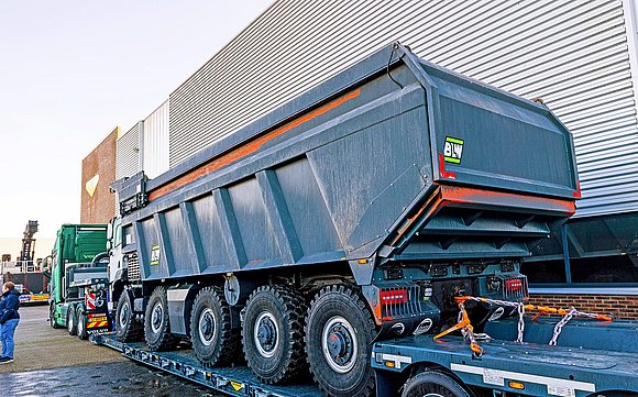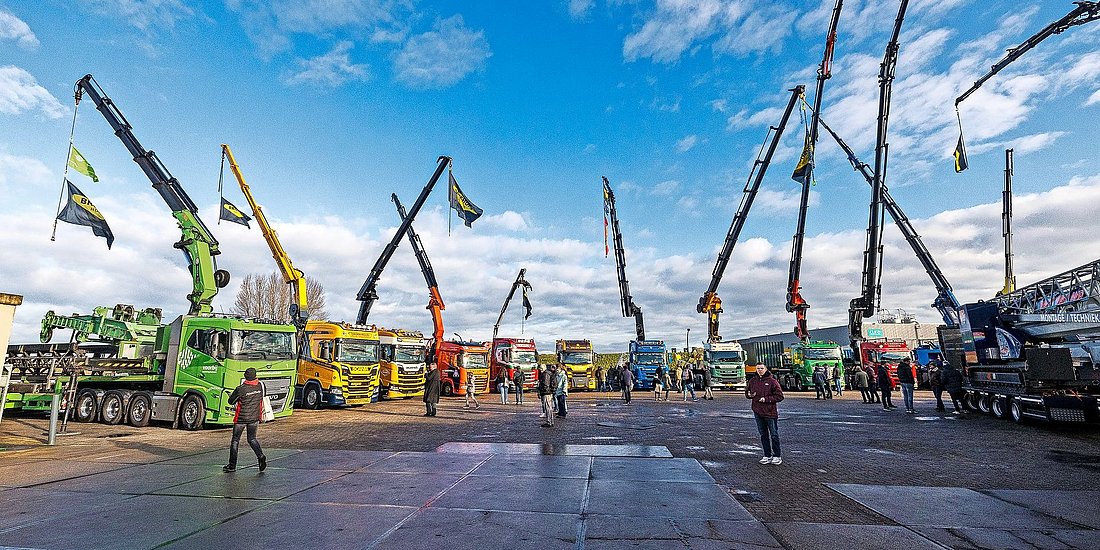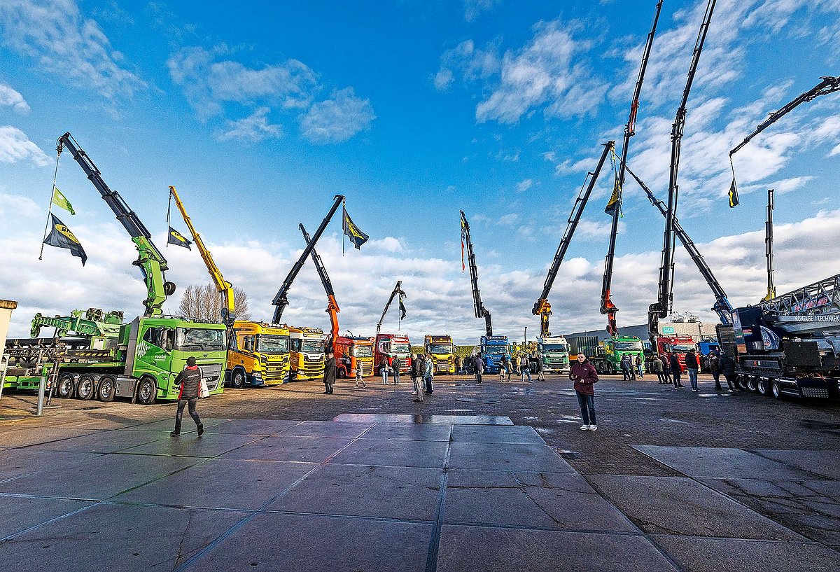 Schon vor Monaten wurde kundgetan, dass am 11. Januar in Kampen Grosses vonstattengehen wird. Und so fanden ca. 12 000 Besucher den Weg in das nördliche Holland. Am Morgen, zu Beginn des Events, waren die meisten der 130 Kundenfahrzeuge noch tiefgefroren, die kalten Temperaturen machten der Stimmung der Besucher aber keinen Abbruch, auch wenn teilweise noch etwas vorsichtige Schritte nötig waren. Neben wenigen Oldtimerfahrzeugen mit Aufliegern aus der langen Geschichte von Broshuis waren natürlich alle möglichen Neufahrzeuge ausgestellt. Viele der Transportkombinationen waren beladen, unter anderem mit Arbeitspontons, Baggern, Transformatoren oder Panzern. Die niederländische Armee nutzte den Event gleich, um ihre Transporttruppen vorzustellen und für den Armeedienst zu werben. In den Produktionshallen konnte man Laseranlagen in Betrieb sehen, die dünne Stahlbleche nach Programm schnitten, sodass die Besucher einen Tieflader zurechtbiegen konnten. Dieser Tieflader, der ungefähr im Massstab 1:50 gehalten ist, kann anschliessend als Handyhalterung dienen. Weiter konnte man Schweissrobotern zuschauen, die einzelne Komponenten schweissen. Allerdings waren die Schweissbrenner abgeschaltet, sodass die Türen des Schweissbereichs geöffnet bleiben konnten und die Besucher auch etwas sahen.