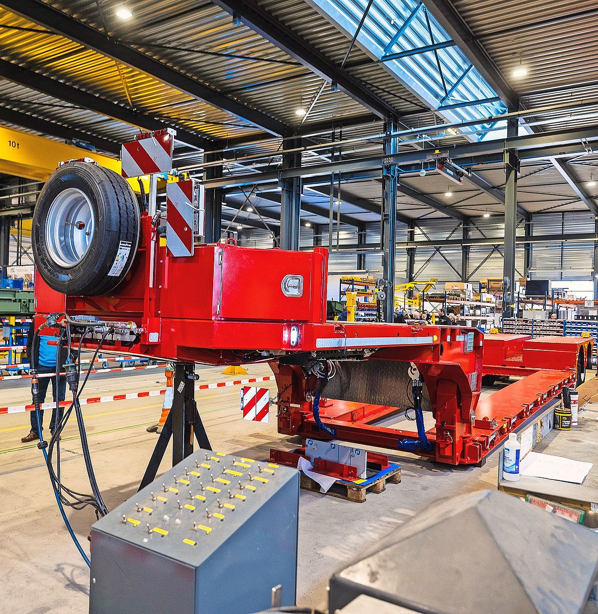 Nach der Komponentenfertigung ging es zum nächsten Schritt der Produktion: dem Rohbau der Auflieger. Hier wurde wiederum geschweisst. Ein Briefbeschwerer mit dem Broshuis-Logo konnten die Besucher selber zusammenschweissen. Ansonsten sah man, wie die einzelnen Komponenten zu einem kompletten Auflieger wachsen, der noch roh ist. Der nächste Schritt ist das Sandstrahlen und das anschliessende Lackieren in der Malerei. Riesige Spritzkabinen sind dazu notwendig. Nach dem Lackieren kommt die Endmontage mit Verkabelung, Bereifung und Endkontrolle des fertigen Aufliegers. Der Rundgang ging aber noch weiter, denn bei Fahrzeugen geht auch mal etwas kaputt oder man revidiert solche Investitionsgüter auch nach vielen strengen Einsatzjahren. In der Servicewerkstatt waren sämtliche grossen Lastwagenhersteller vertreten und zeigten ihre Produkte im Schwertransportbereich.