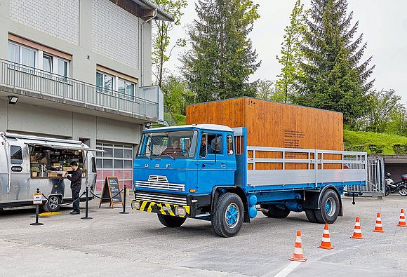 Stefan Kurmann und Laurent Dircks organisierten zusammen eine Ausfahrt für die Nutzfahrzeuge, die aus 18 Lastwagen und Bussen bestand. Die Strecke führte vom Festgelände in der Kiesgrube Eschenbach via Rain um den Sendeturm von Radio Beromünster herum. Dabei galt es, Lastwagenfahrverbote gekonnt zu umschiffen. Neben den historischen Nutzfahrzeugen machten sich auch einige Militärfahrzeuge in Form von Willys Jeep und den legendären Haflingern mit auf den Weg und bereicherten den Konvoi, der nach etwas mehr als einer Stunde wieder auf dem Festgelände eintraf.