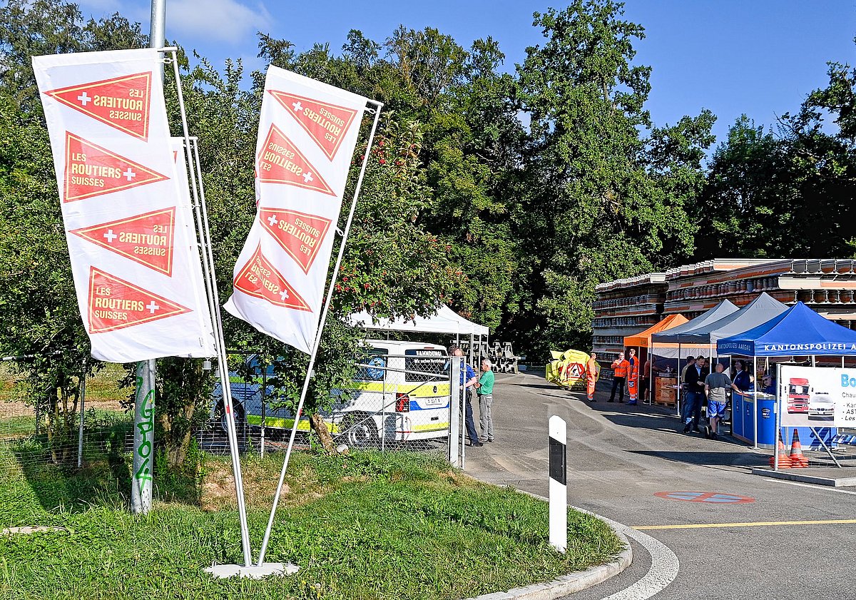 Auch bei der diesjährigen Ausgabe der Aktion Boxenstopp nutzten Chauffeusen und Chauffeure die Gelegenheit, auf dem A1-Rastplatz Birrhard eine Pause zu machen, sich dabei verpflegen zu lassen und mit Polizisten zu sprechen. Auf diese treffen sie sonst eher in unangenehmeren Situationen wie Verkehrskontrollen. Die Polizei muss dafür sorgen, dass die Gesetze eingehalten werden, Chauffeure wiederum stehen unter Zeitdruck und unterbrechen ihre Arbeit nur ungern wegen Kontrollen. Deshalb organisiert die Kantonspolizei Aargau jeweils zusammen mit Les Routiers Suisses und der ASTAG den Boxenstopp, bei dem in ungezwungenem Rahmen ein Austausch stattfinden kann.