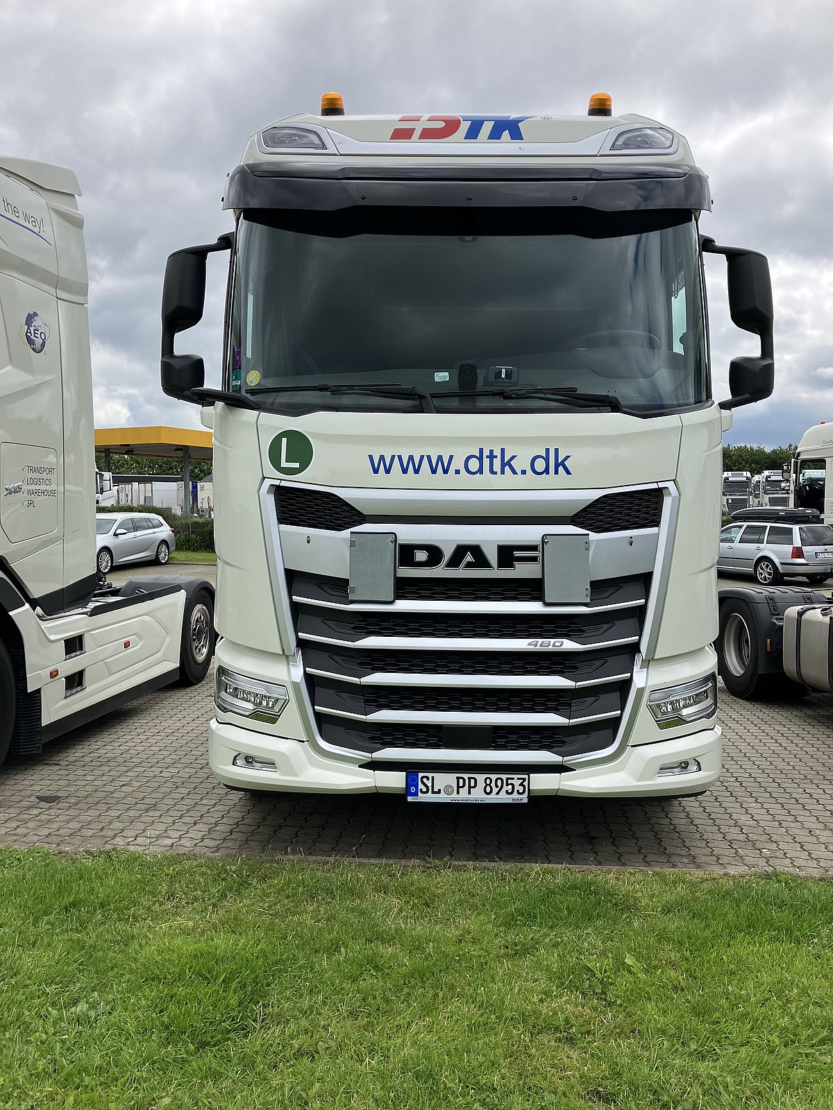 Am 22. Juni ging die Reise los. Die ganze Ausrüstung in den Pw und ab nach Dänemark. Tags darauf Fahrzeug einrichten und sich mit dem neuen Arbeitsgerät vertraut machen. Ein DAF XG 480 ist nun mein Arbeitsplatz. Nachdem ich vom Chef und seiner Assistentin gebrieft wurde, ging es los. Die Einführung war professionell. Wo tanken, Ansprechpartner, Telefon, Maut und die Einhaltung der ARV wurden besprochen. Das ganze gab es auch noch schriftlich.