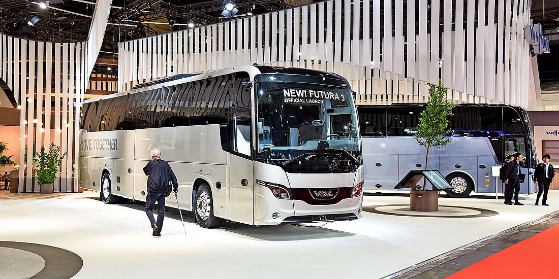 Der niederländische Hersteller VDL hatte das belgische Familienunternehmen Van Hool, das aus innerfamiliären Gründen in finanzielle Schieflage geraten war, aus der Insolvenz gerettet, bietet nun die Fahrzeuge beider Firmen unter dem neuen Namen VDL Bus Group an und stellt erstmals in Brüssel auf einem gemeinsamen Stand aus. Highlight in Brüssel war der brandneue VDL Futura 3, die dritte Generation des bekannten Reisebusses. Erste Fahrzeuge sollen bereits 2026 auch in der Schweiz anzutreffen sein, wobei die Plattform auch für den Einsatz alternativer Antriebe ausgelegt ist; ein künftiger E-Futura 3 wird aus Gewichtsgründen ausschliesslich als Dreiachser kommen.