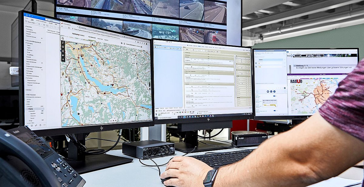 Zur Verifizierung nutzt das Redaktionsteam Verkehrskameras – auf den Bildschirmen sind gleichzeitig bis zu 18 Livebilder sichtbar. Die meisten dieser Kameras gehören zum Netz des ASTRA. Grösstenteils erstellt das ASTRA die Meldungen des nationalen Strassennetzes. Es kommt aber auch vor, dass Viasuisse das ASTRA kontaktiert, um eine Meldung zu prüfen oder zu erstellen.