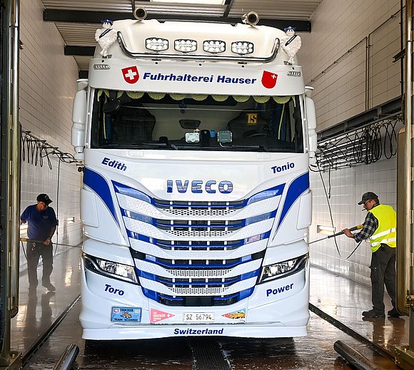 Einer mit eigenem Lastwagen ist Routiers-Mitglied Toni Hauser aus Oberarth SZ, der ein eigenes Unternehmen für internationale Transporte hat. Nachdem der neue Iveco wieder strahlend sauber ist, sagt er, warum er jeweils zu Erwin Steiner gehe. «Erwin ist der beste Lastwagenwascher, den es gibt. Das ist wirklich so.» Dieser nimmt das Kompliment natürlich gerne zur Kenntnis.