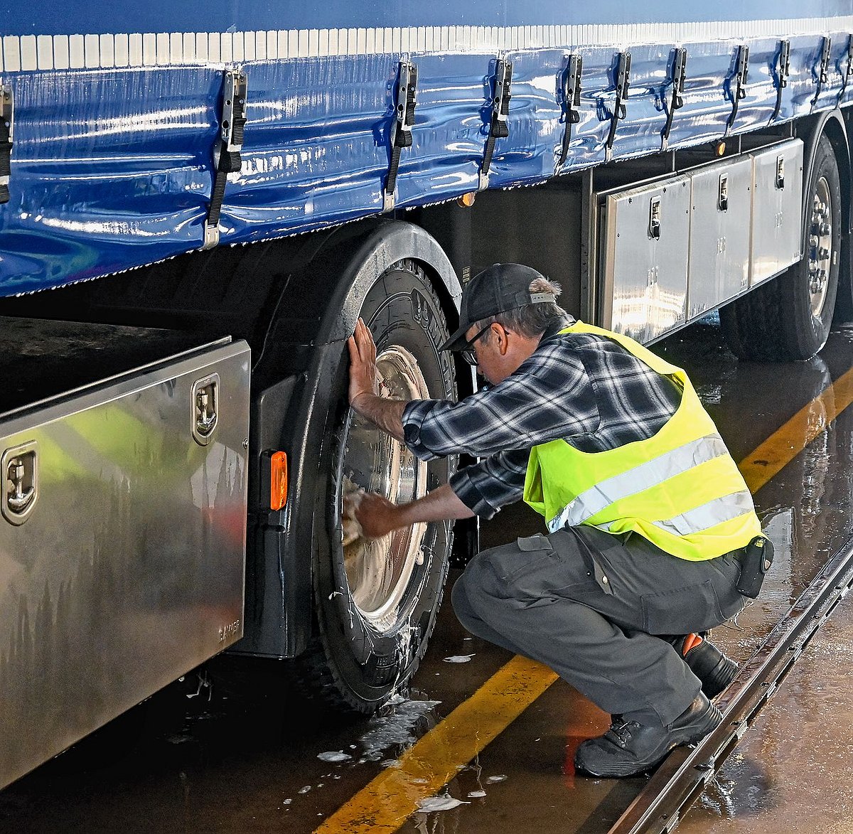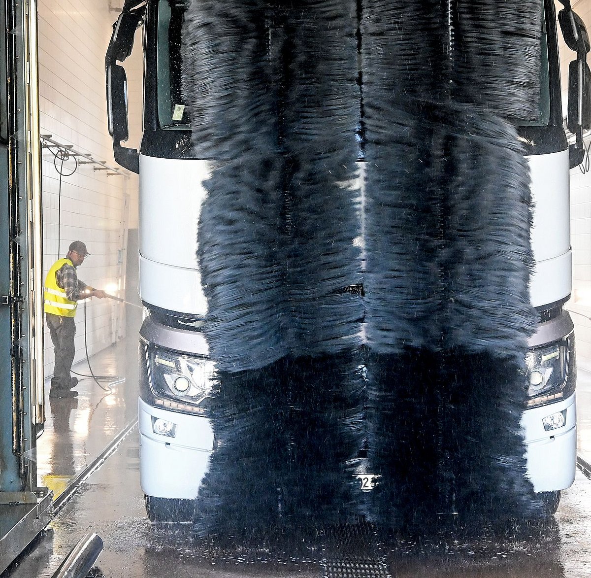 Vor allem donnerstags und freitags herrscht bei der Waschanlage auf dem Areal der Senn Transport in Seewen SZ, die zu Planzer gehört, viel Betrieb. Nicht selten steht vor dem Tor bereits wieder ein Lastwagen, während drinnen noch geschrubbt wird. Dann ist Erwin Steiner ganz in seinem Element. Seit über 31 Jahren ist der 51-Jährige für die Waschanlage verantwortlich. «Ich wäre gerne Chauffeur geworden, konnte aber nicht», erzählt er. «Aber so bin ich trotzdem um diese Fahrzeuge herum.» 31 Jahre sind eine lange Zeit, da sammelt sich viel an Erfahrung. «Die neue Anlage steht seit 9 Jahren», sagt er. «Seither habe ich mehr als 31 000 Lastwagen gewaschen.» Bei schönem Wetter sei der Andrang grösser, wenn es regne kleiner. Der Winter aber sei die Saison mit den meisten Kunden; vor allem, um das Salz abzuwaschen.