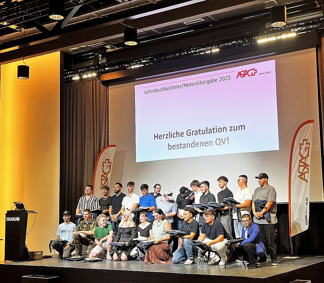 Am 4. Juli 2025 fand die Diplomfeier der Strassentransportfachleute der Berufsschule Limmattal statt. Um 18.45 Uhr trafen die 22 Strassentransportfachleute und ein Strassentransportpraktiker ein. Nach einem Apéro richteten Romaine Roggenmoser, Präsidentin ASTAG Zürich, und August Binggeli, Lehrlingsverantwortlicher der Sektion Zürich von Les Routiers Suisses, ein paar Worte an die Absolventinnen und Absolventen. Danach wurden die langersehnten Fähigkeitszeugnisse verteilt. Wie schon in den vergangenen Jahren wurden die drei besten Noten verlesen.Und dieses Jahr waren die drei Besten alles Frauen mit einer Note zwischen 5,2 und 5,6. Das zeigt, dass die Frauen auf dem Vormarsch sind. Von unseren drei Sektionen erhielten die Absolventinnen und Absolventen einen Wireless-Charger und vom Mutterhaus das Diplom und eine wasserdichte Tasche. Nach dem offiziellen Teil gab es ein reichhaltiges Salatbuffet, Grilladen und ein Dessertbuffet. Wer wollte, durfte dann noch das Ebianum besichtigen. Als die meisten um ca. 23 Uhr nach Hause gingen, blieben einige Absolventen noch und übernachteten auch dort.