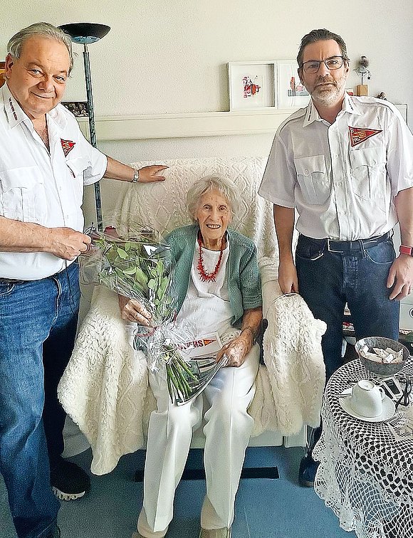 La Sezione Ticino e Moesano festeggia importanti avvenimenti: il 9 aprile 2025, la signora Ilse Zaninelli, prima segretaria della Sezione negli anni cinquanta del secolo scorso, ha festeggiato in buone condizioni di salute le sue prime 90 primavere. A rendere visita alla gentile signora presso la casa Belsoggiorno di Ascona il Presidente Francesco Ferriroli con il Segretario Ian Rossi-Pedruzzi.