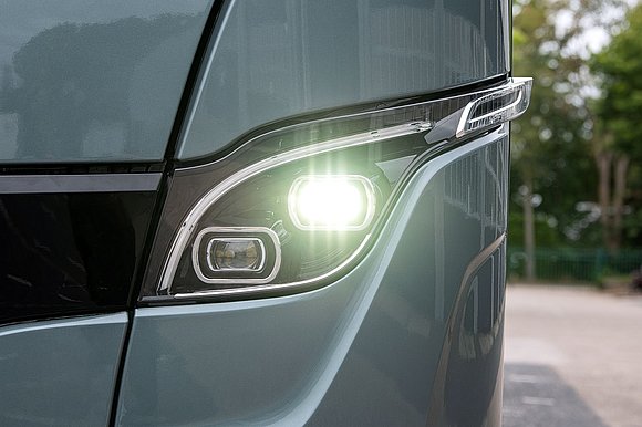 Apropos Licht: Die Voll-LED-Leuchten vorne und hinten verbessern die Sicht bei Dunkelheit und schlechtem Licht substanziell. Das macht den Bus besser sichtbar, reduziert zugleich die Gefahr von Übermüdung bei Nachtfahrt und unterstützt das moderne Design der neuen Busgeneration.