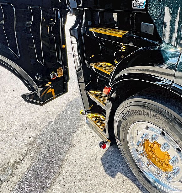 Er habe die Konfiguration und die Gestaltung des Actros noch mit Justin Métroz, der schönes Lkw-Design liebte und oft an Treffen war, besprochen, sagt Luca Simone. «Wir kannten uns gut und hatten ähnliche Inte-ressen. Auch ich besuche gerne Truck-Treffen, bin selber als Aushilfschauffeur international gefahren und habe definitiv eine grosse Portion Diesel im Blut.» So habe man über die Lackierung, die tiefe Sonnenblende oder die Drehlampen gesprochen, die der Actros nun erhalten hat. «Dezent, nicht überladen, aber trotzdem etwas Spezielles, das war das Ziel», erklärt Luca Simone, Verkaufsberater bei der Garage Saurer SA in Visp (VS) und Conthey (VS). Genau so ist der Lkw, nach der Konfiguration bei der Garage Saurer und dem Umbau in Italien, auch geworden, ohne dass ihn der Auftraggeber noch hat sehen können. «Das war ein sehr persönliches und emotionales Projekt», sagt Luca Simone bewegt.