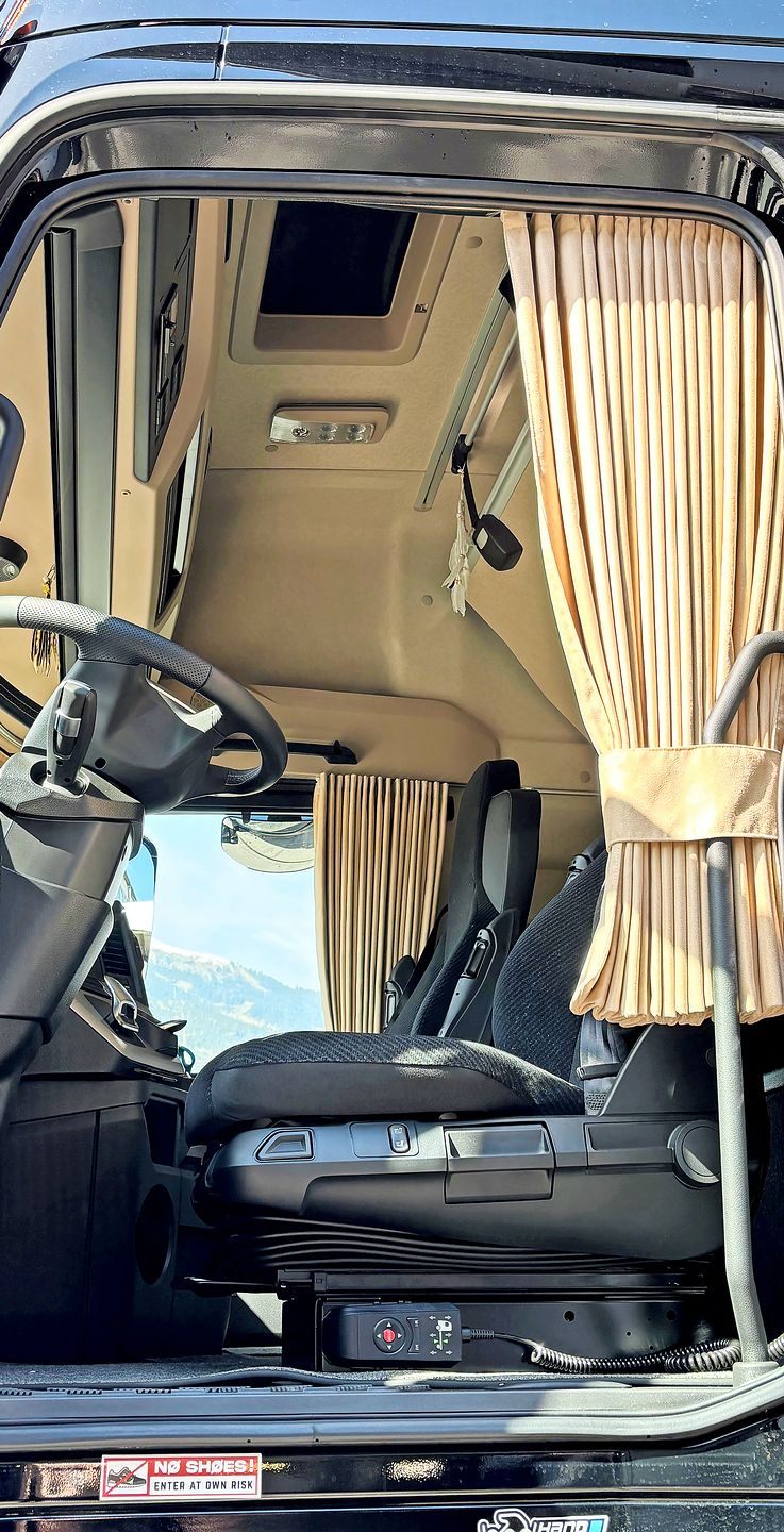 Der Actros L 1853 LS 4×2 hat laut Luca Simone einen 530-PS-Motor der neusten Generation, der mehr Drehmoment liefert als die älteren Modelle. Das neue Power-shift-Advanced-Getriebe sei sehr spritzig, die Schaltzeiten seien um 40 Prozent schneller geworden. Für den Komfort sorge unter anderem die Giga-Space-Kabine. Sandie Brasey hat den Actros natürlich auch schon getestet, obwohl nicht sie, sondern hauptsächlich einer der Chauffeure damit unterwegs ist. «Ich bin wirklich begeistert von diesem Fahrzeug, es ist bequem, sparsam und geräumig», sagt sie. Mit dem Actros gehören jetzt fünf Lastwagen zur Flotte der Justin Métroz Transports SA.