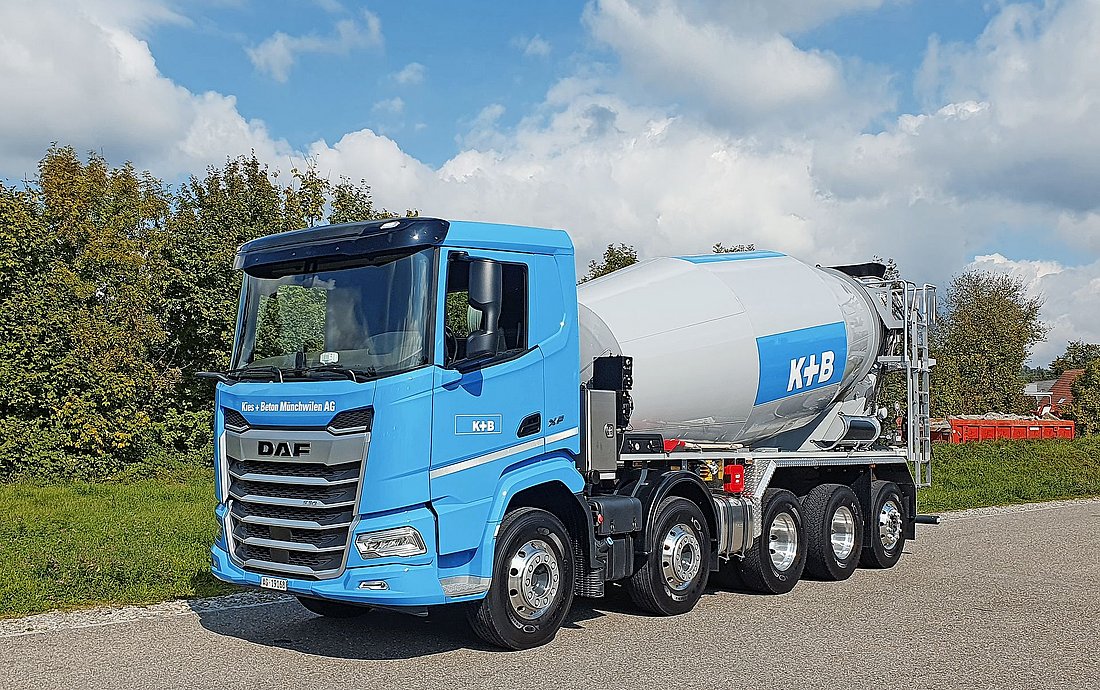Die Kies + Beton Münchwilen AG hat ihren Fuhrpark um einen neuen DAF erweitert. Das leistungsstarke Baustellenfahrzeug mit Fahrmischer von Liebherr wurde von der Birrer Nutzfahrzeuge AG aus Sisseln (AG) geliefert und ergänzt den modernen Maschinenpark des traditionsreichen Unternehmens, das seit Jahren für Qualität und Zuverlässigkeit in der Betonproduktion und im Transport steht.