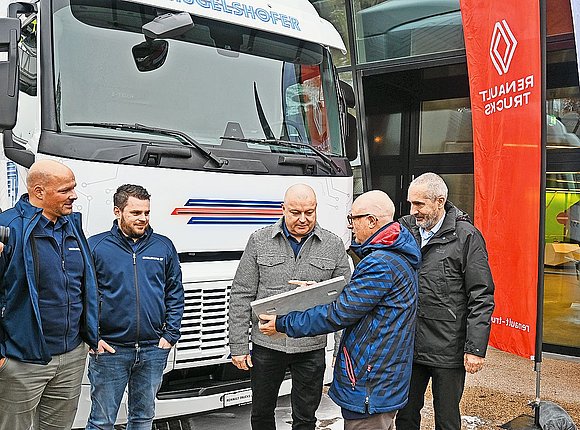 Bruno Blin, Präsident von Renault Trucks, überreichte die Platten persönlich. Zuvor sprach er in der Umweltarena zu den geladenen Gästen. «Die Elektrifizierung der Nutzfahrzeuge ist nicht nur für die Transportunternehmen, unsere Kunden, eine regelrechte Revolution, sondern auch für die Industrie, uns, die Hersteller», sagte er. «Wir haben 1000 neue Ingenieure angestellt.» Zudem zeigte er sich überzeugt, dass der Grossteil der Nutzfahrzeugflotte bis 2040 elektrisch sein werde.