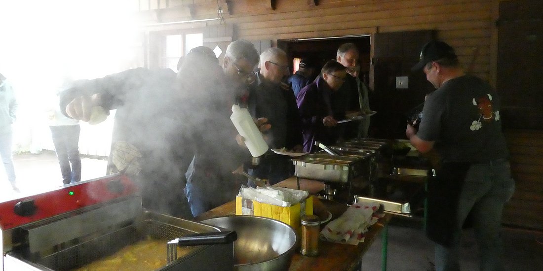 Der diesjährige Grillplausch musste aus verschiedensten organisatorischen Gründen nach vorne verschoben werden. Trotzdem fanden am 23. Juni zahlreiche Teilnehmer den Weg zu «unserer» Hütte in Niederuzwil. Das Wetter spielte auch nicht ganz verrückt und so konnte, während unser Festwirt noch die letzten Vorbereitungen traf, im freien der Apéro eingenommen werden. Einmal gerufen «me cha ässe», versammelten sich alle, wie im Militär, zum Essen fassen. Das Buffet war reichlich mit verschiedenem Fleisch, Pommes und natürlich Salat angerichtet. Ebenso war der Festwirt um reichlich Nachschub besorgt. Im Inneren der Hütte genoss man das Essen. Als jeder genug hatte, genoss man den Nachmittag mit Kartenspielen, Fussball, hochstehenden Gesprächen und auch ein «Verdauerli» gehörte dazu. Schnell wurde es Abend und nachdem Miteinander zusammengeräumt wurde, schloss man die Hütte und ging zufrieden nach Hause. Besten Dank an die Organisatoren und die Teilnehmer die zu diesem gelungenen Anlass beigetragen haben. Auf eine rege Teilnahme am nächsten Anlass freut sich der Vorstand. Unter www.routiers-säntis.ch/berichte findet man einen ausführlicheren Bericht. (Markus Gmür)